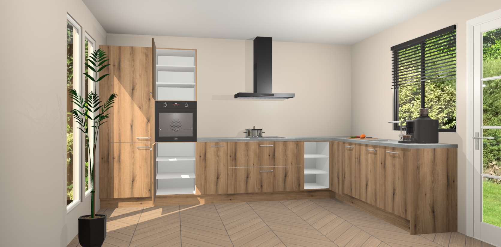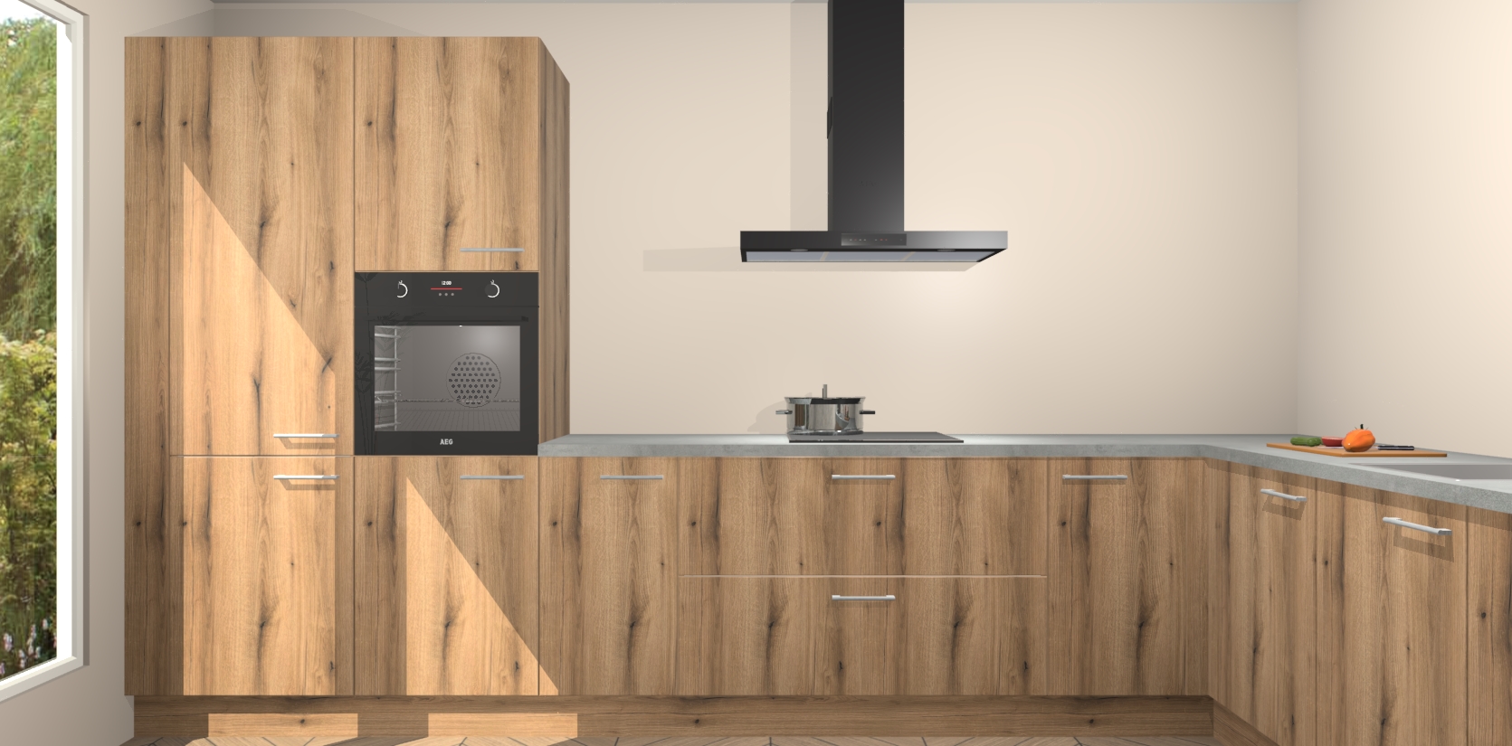 Met een modern, tijdloos design en ruime opslagruimte, zult u zich in no-time thuis voelen in uw nieuwe keuken. Uw leven wordt eenvoudiger met de soft-close deuren die voor het ultieme stille comfort zorgen - geen geluid dat u stoort terwijl u kookt. Ook is de keuken voorzien van 5 ingebouwde apparaten: een oven, inductie kookplaat, afzuigkap, vaatwasser en koelkast. Deze kunnen gemakkelijk na bestelling worden bijgewerkt naar AEG - waardoor uw luxe ervaring compleet is.
