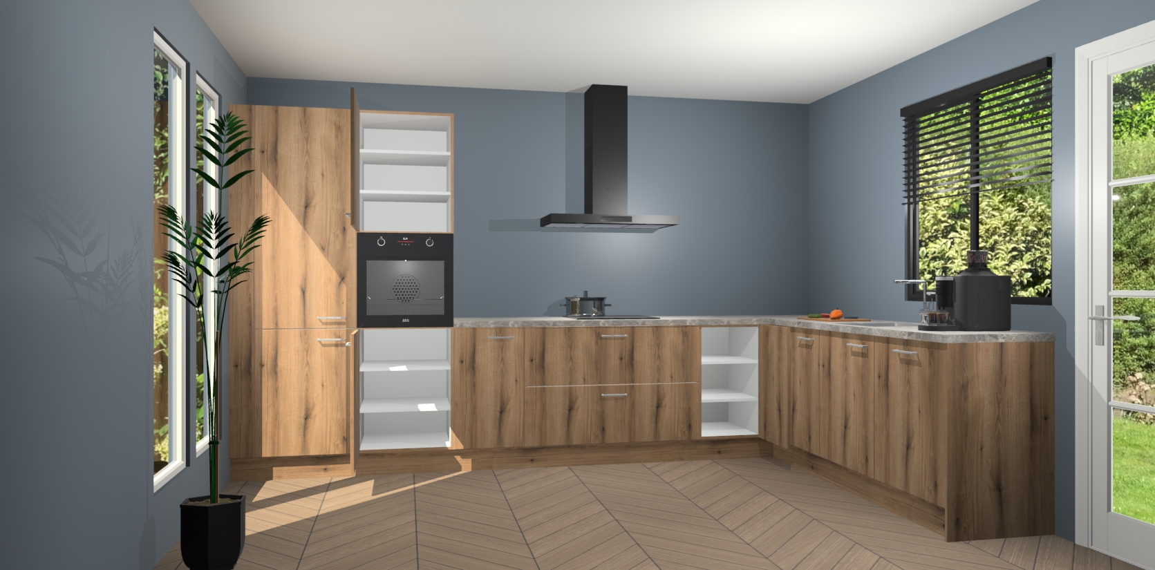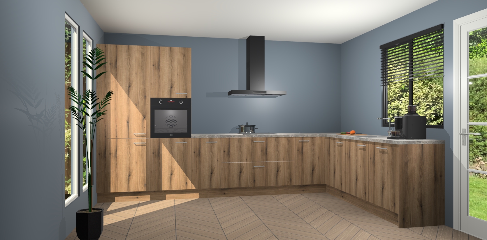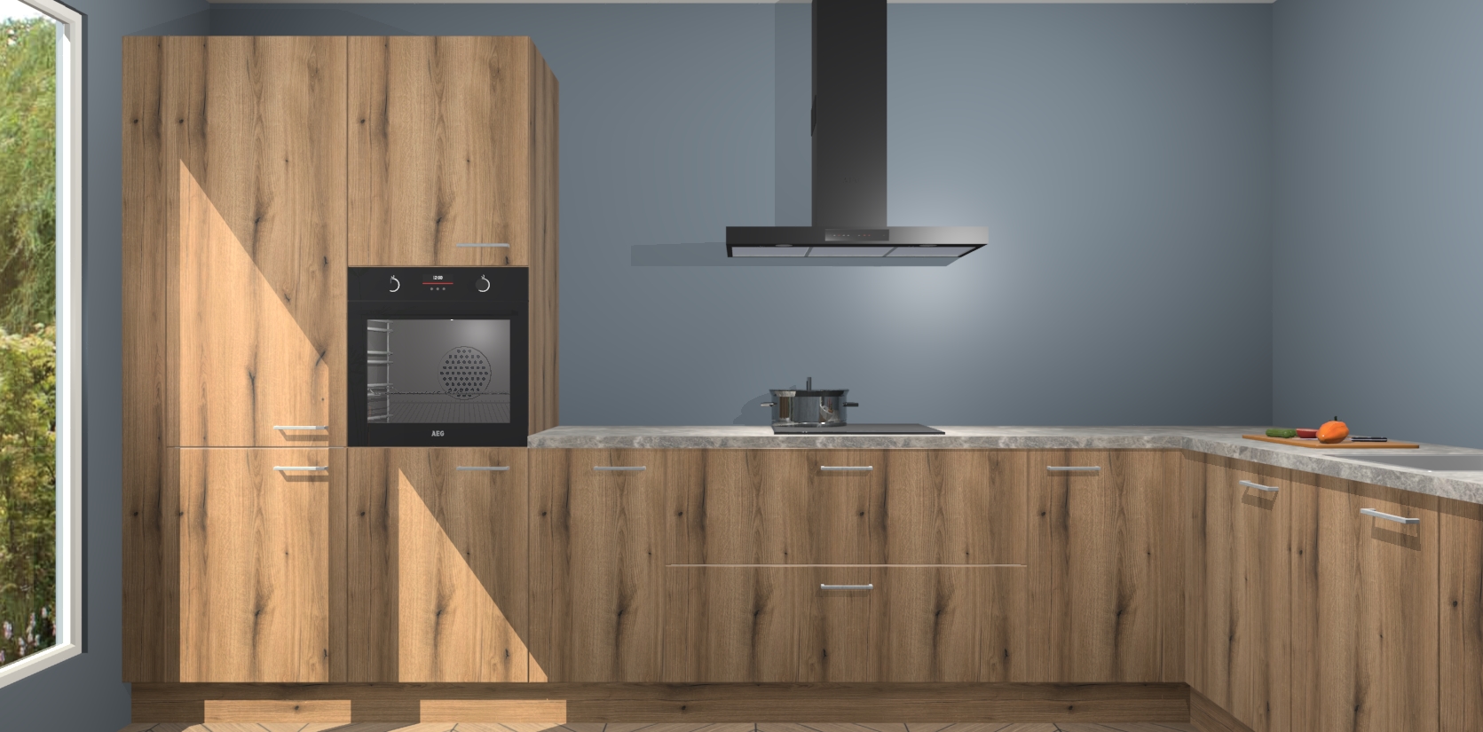 Met een modern, tijdloos design en ruime opslagruimte, zult u zich in no-time thuis voelen in uw nieuwe keuken. Uw leven wordt eenvoudiger met de soft-close deuren die voor het ultieme stille comfort zorgen - geen geluid dat u stoort terwijl u kookt. Ook is de keuken voorzien van 5 ingebouwde apparaten: een oven, inductie kookplaat, afzuigkap, vaatwasser en koelkast. Deze kunnen gemakkelijk na bestelling worden bijgewerkt naar AEG - waardoor uw luxe ervaring compleet is.