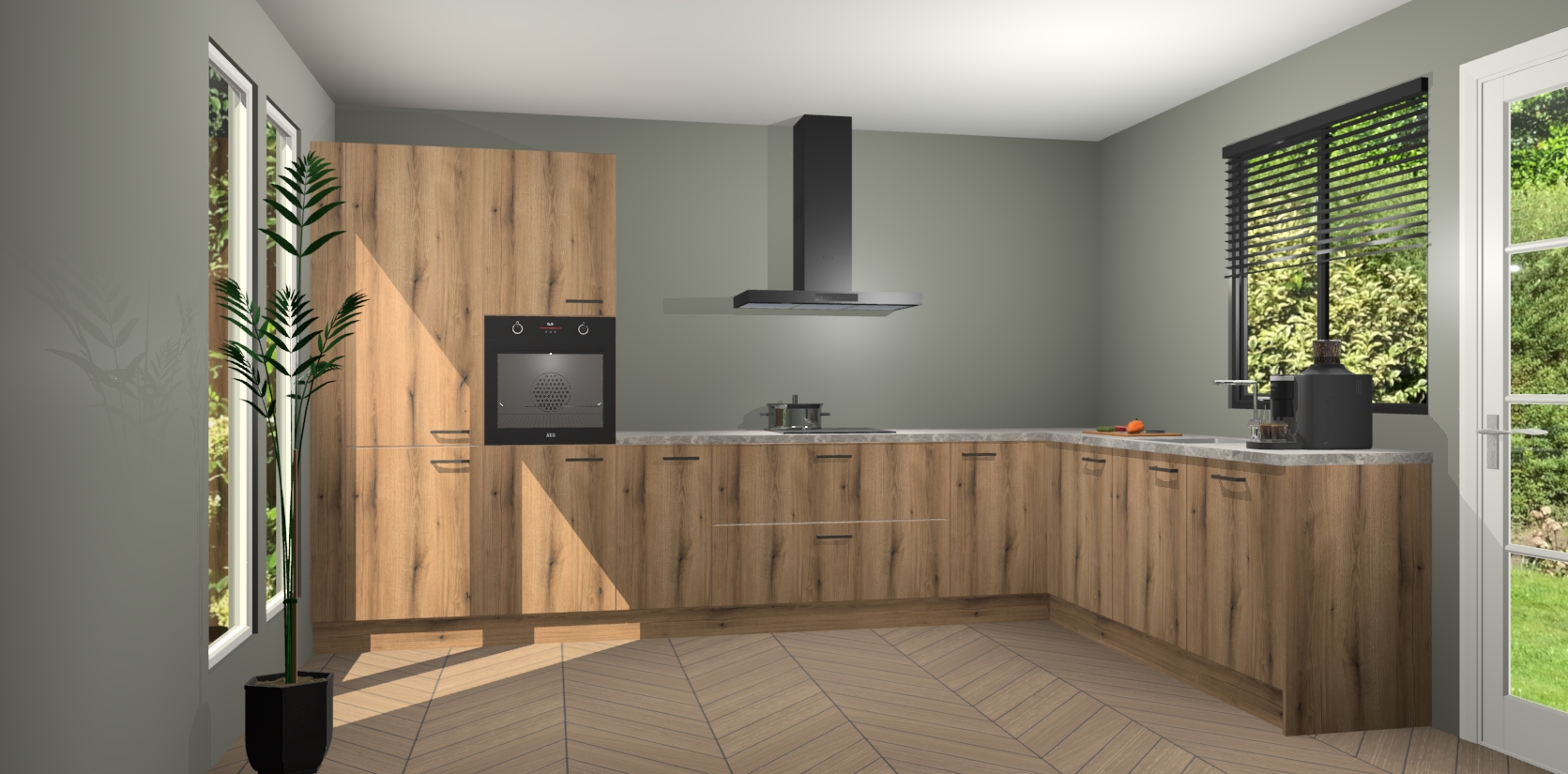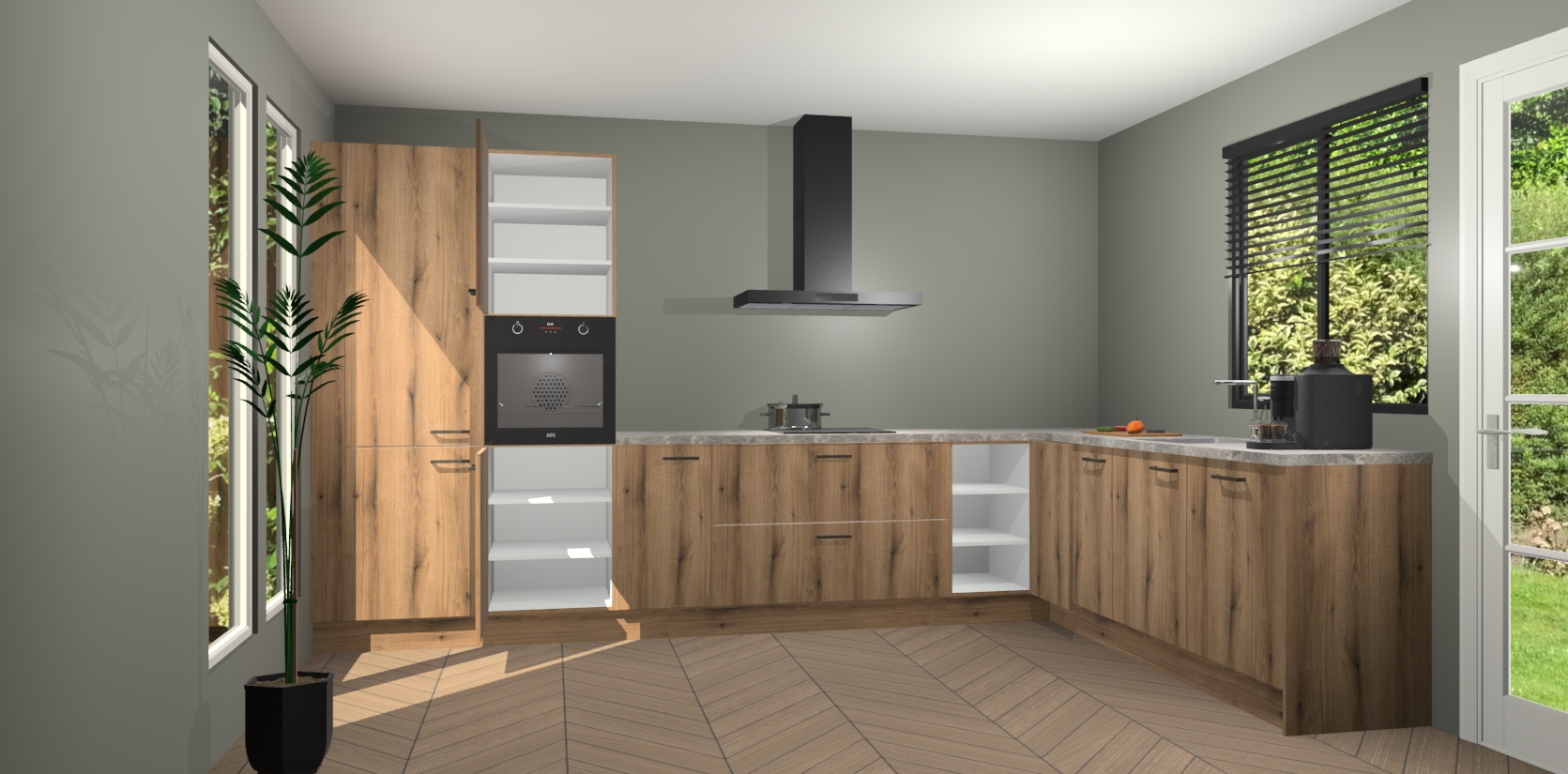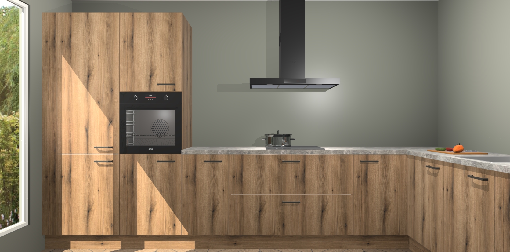 Met een modern, tijdloos design en ruime opslagruimte, zult u zich in no-time thuis voelen in uw nieuwe keuken. Uw leven wordt eenvoudiger met de soft-close deuren die voor het ultieme stille comfort zorgen - geen geluid dat u stoort terwijl u kookt. Ook is de keuken voorzien van 5 ingebouwde apparaten: een oven, inductie kookplaat, afzuigkap, vaatwasser en koelkast. Deze kunnen gemakkelijk na bestelling worden bijgewerkt naar AEG - waardoor uw luxe ervaring compleet is.