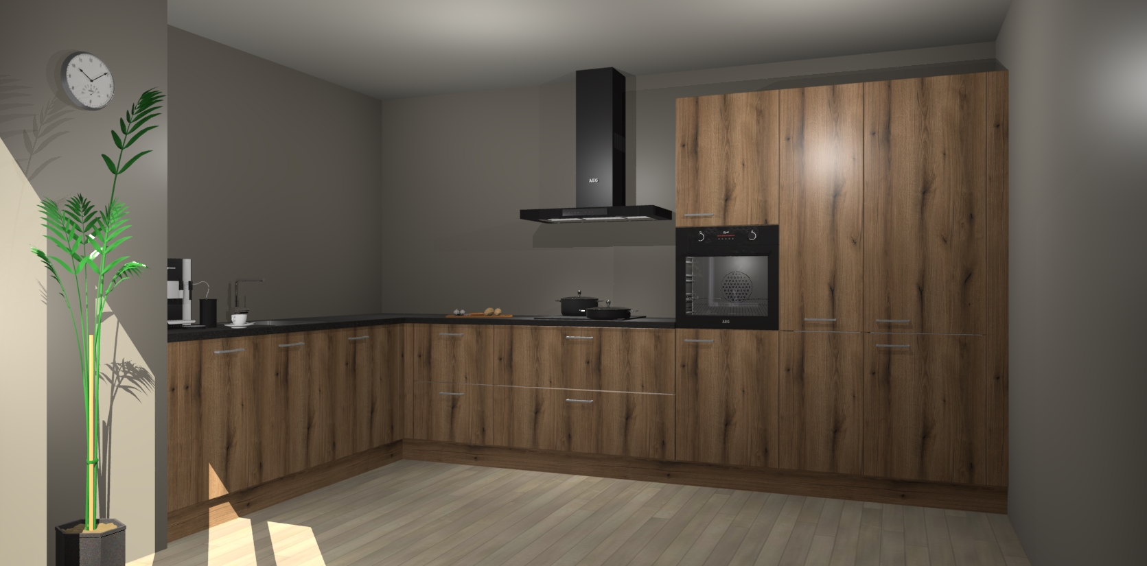 Welkom bij de goud eiken keuken Nuuk. Deze prachtige keuken zal de komende jaren het middelpunt van de belangstelling in uw huis zijn. Uitgerust met vijf inbouwapparaten komt u nooit kookgereedschap tekort.