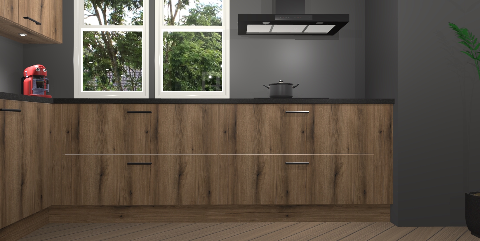 Inclusief plinten, stelpoten en werkblad