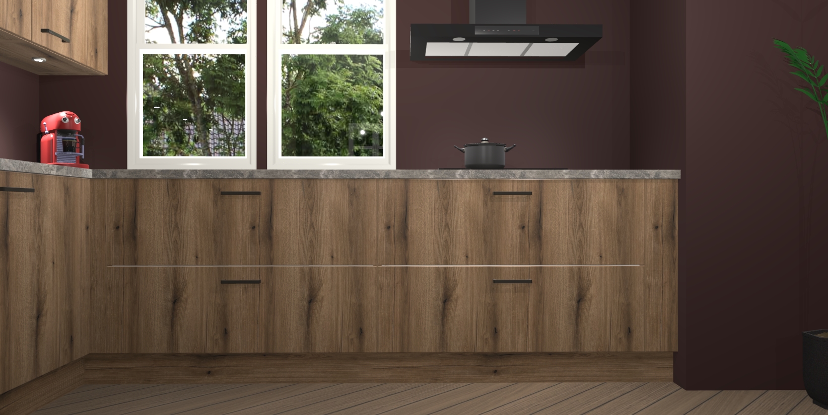 Inclusief plinten, stelpoten en werkblad