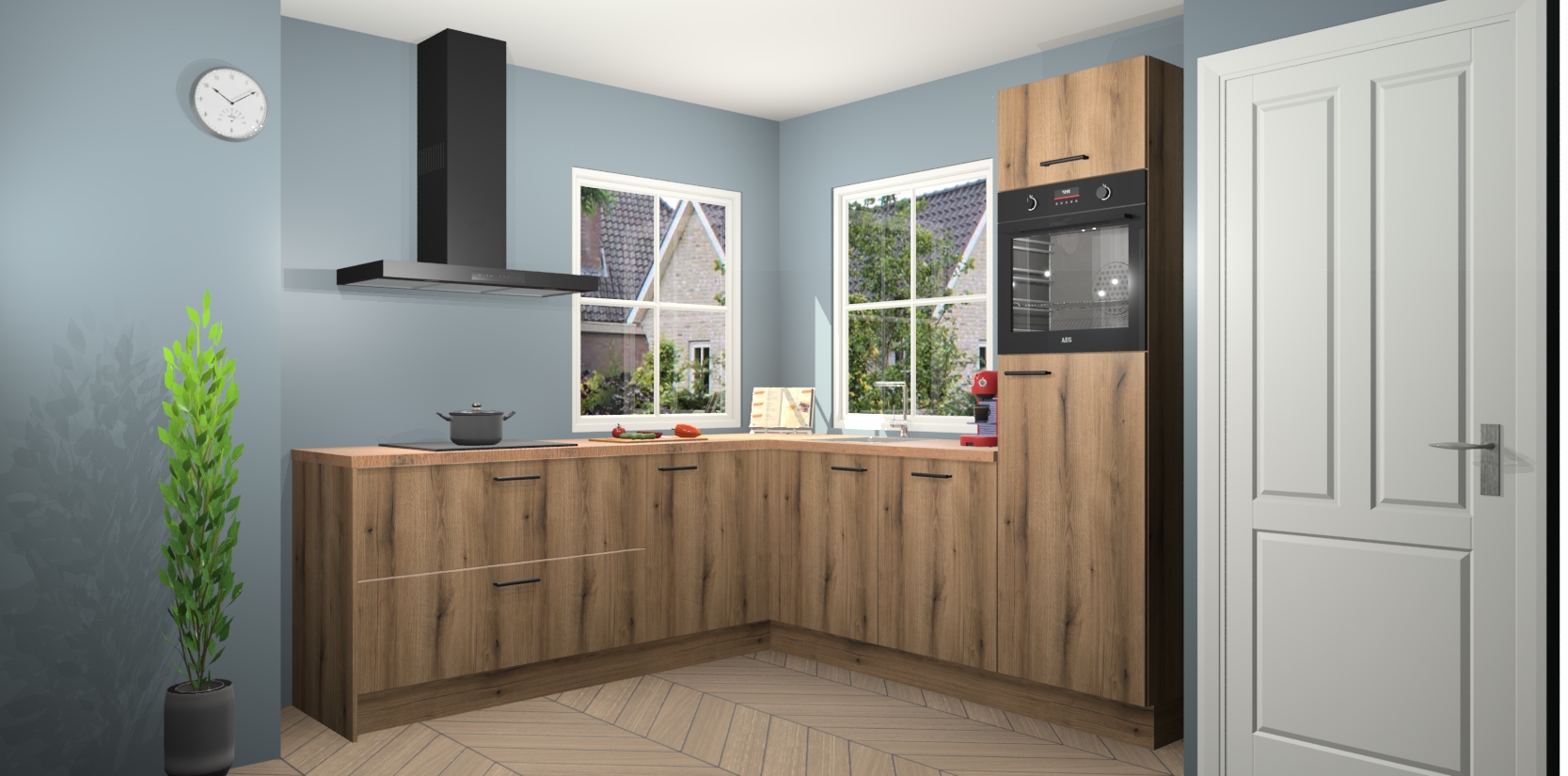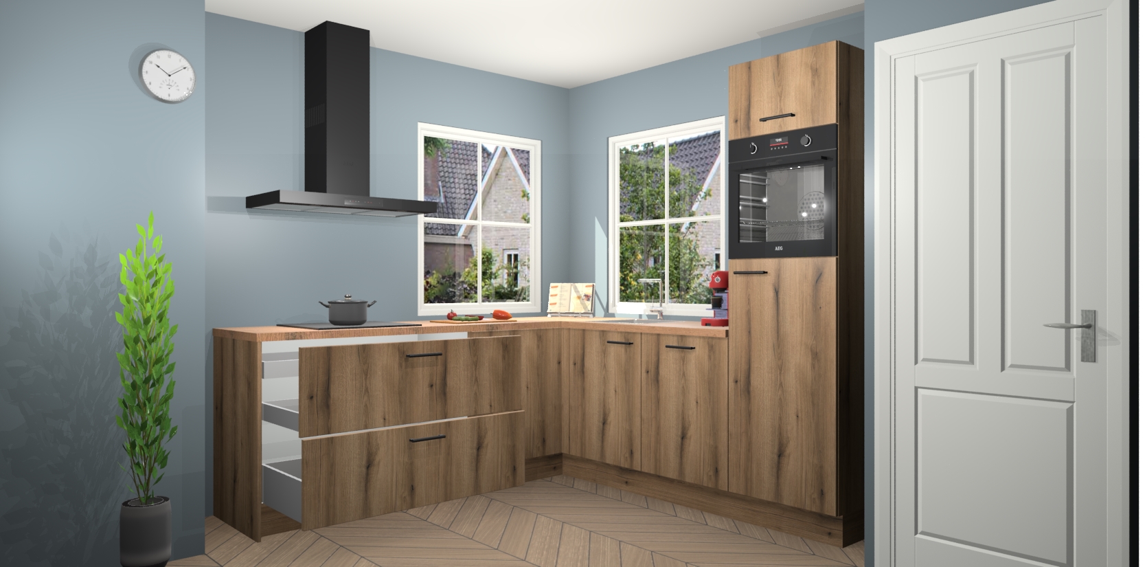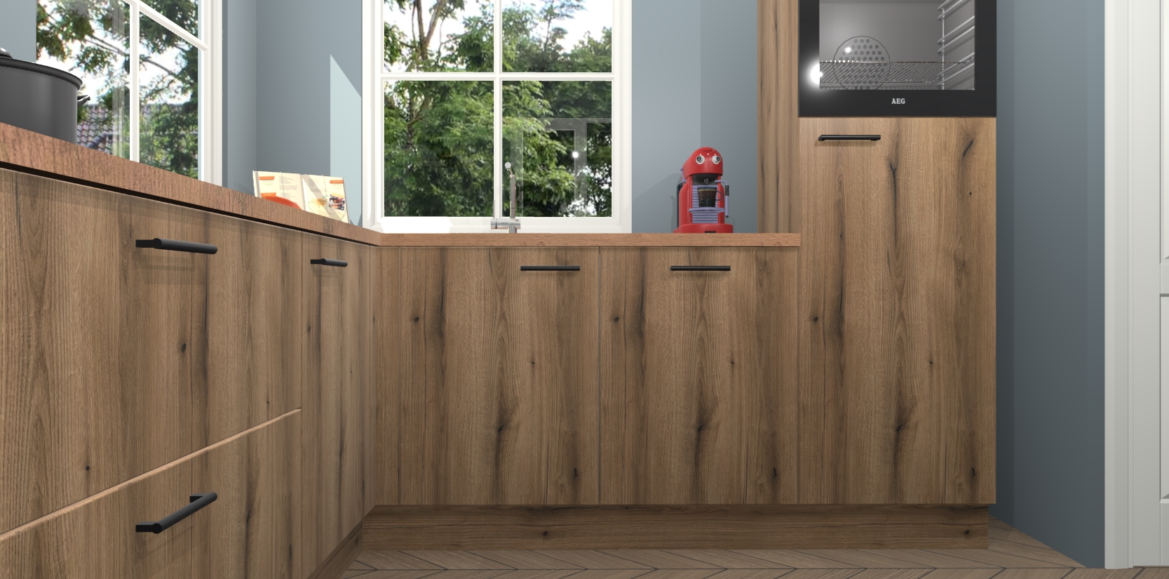 De Goud Eiken keuken Pai bevat vijf essentiële inbouwapparaten - een oven, inductiekookplaat, afzuigkap, vaatwasser en koelkast - zodat u er na levering meteen in kunt. Voor de slimme kopers die weten dat apparaten vaak het verschil kunnen maken tussen functioneel en luxueus, bieden we eenvoudige upgradeopties naar AEG, van oven naar combimagnetron na bestelling of naar een kookplaat met geïntrigeerde afzuiging. En met onze vaste lage prijs en snelle levering binnen zeven weken vanaf de orderbevestiging hoeft u zich geen zorgen te maken over verborgen kosten of lange levertijden die uw droomkeuken kunnen vertragen.