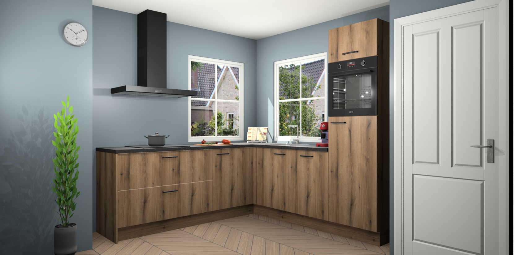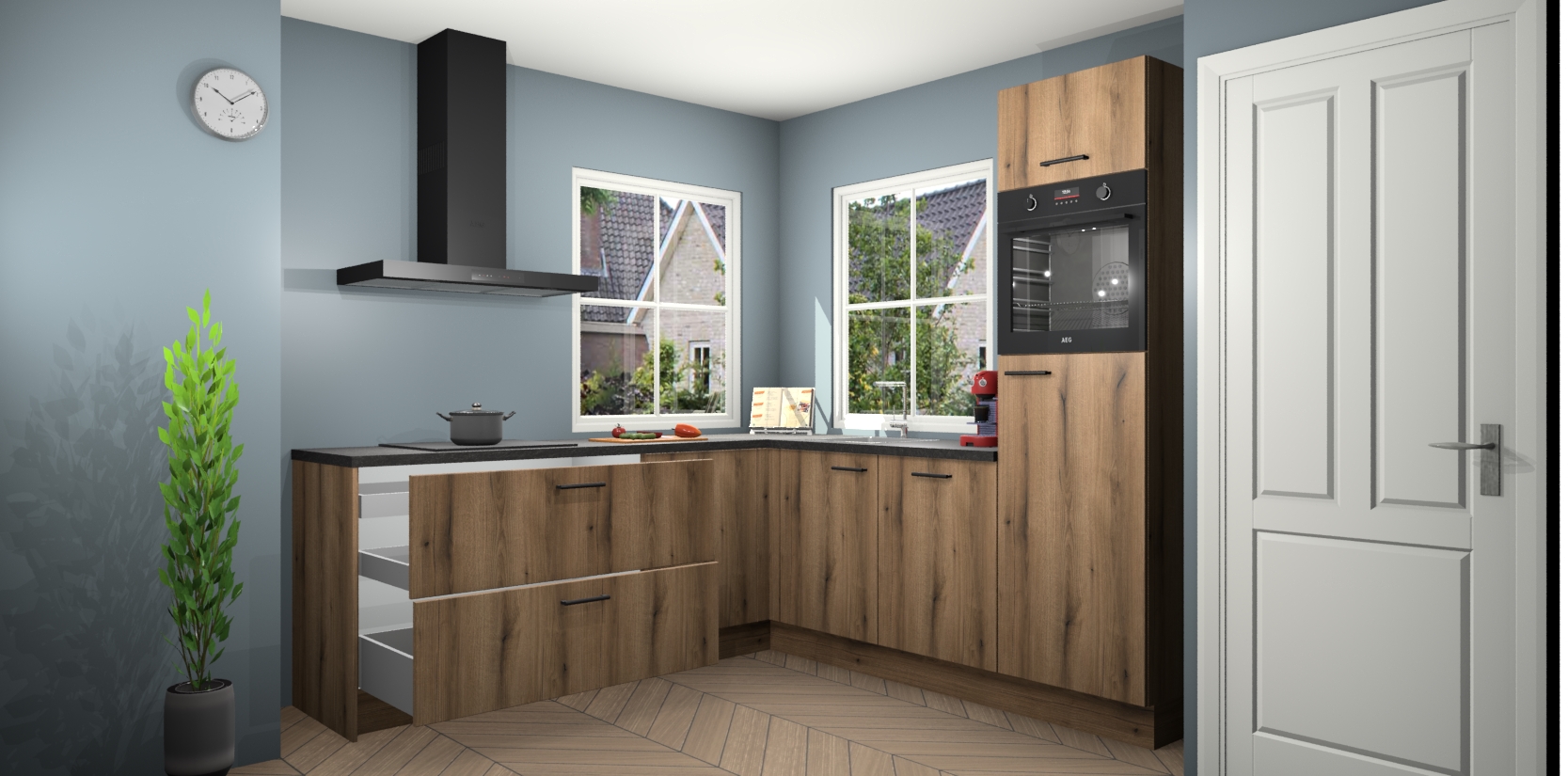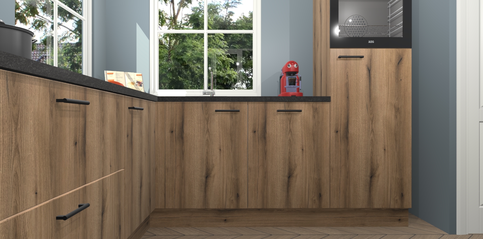 De Goud Eiken keuken Pai bevat vijf essentiële inbouwapparaten - een oven, inductiekookplaat, afzuigkap, vaatwasser en koelkast - zodat u er na levering meteen in kunt. Voor de slimme kopers die weten dat apparaten vaak het verschil kunnen maken tussen functioneel en luxueus, bieden we eenvoudige upgradeopties naar AEG, van oven naar combimagnetron na bestelling of naar een kookplaat met geïntrigeerde afzuiging. En met onze vaste lage prijs en snelle levering binnen zeven weken vanaf de orderbevestiging hoeft u zich geen zorgen te maken over verborgen kosten of lange levertijden die uw droomkeuken kunnen vertragen.