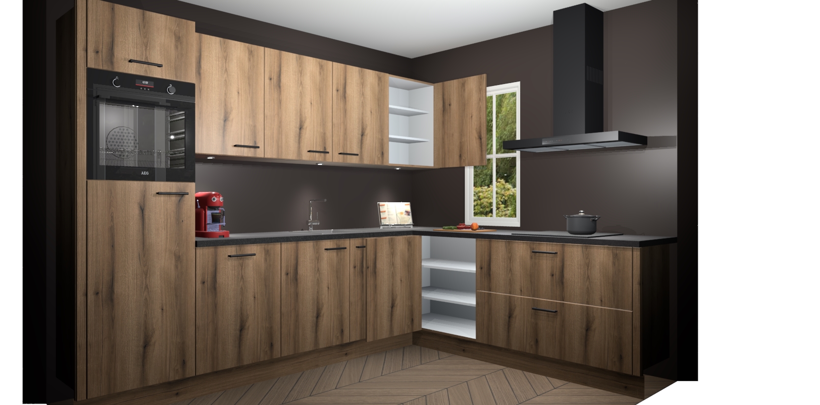 Inclusief plinten, stelpoten en werkblad