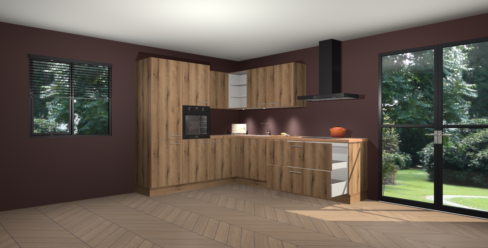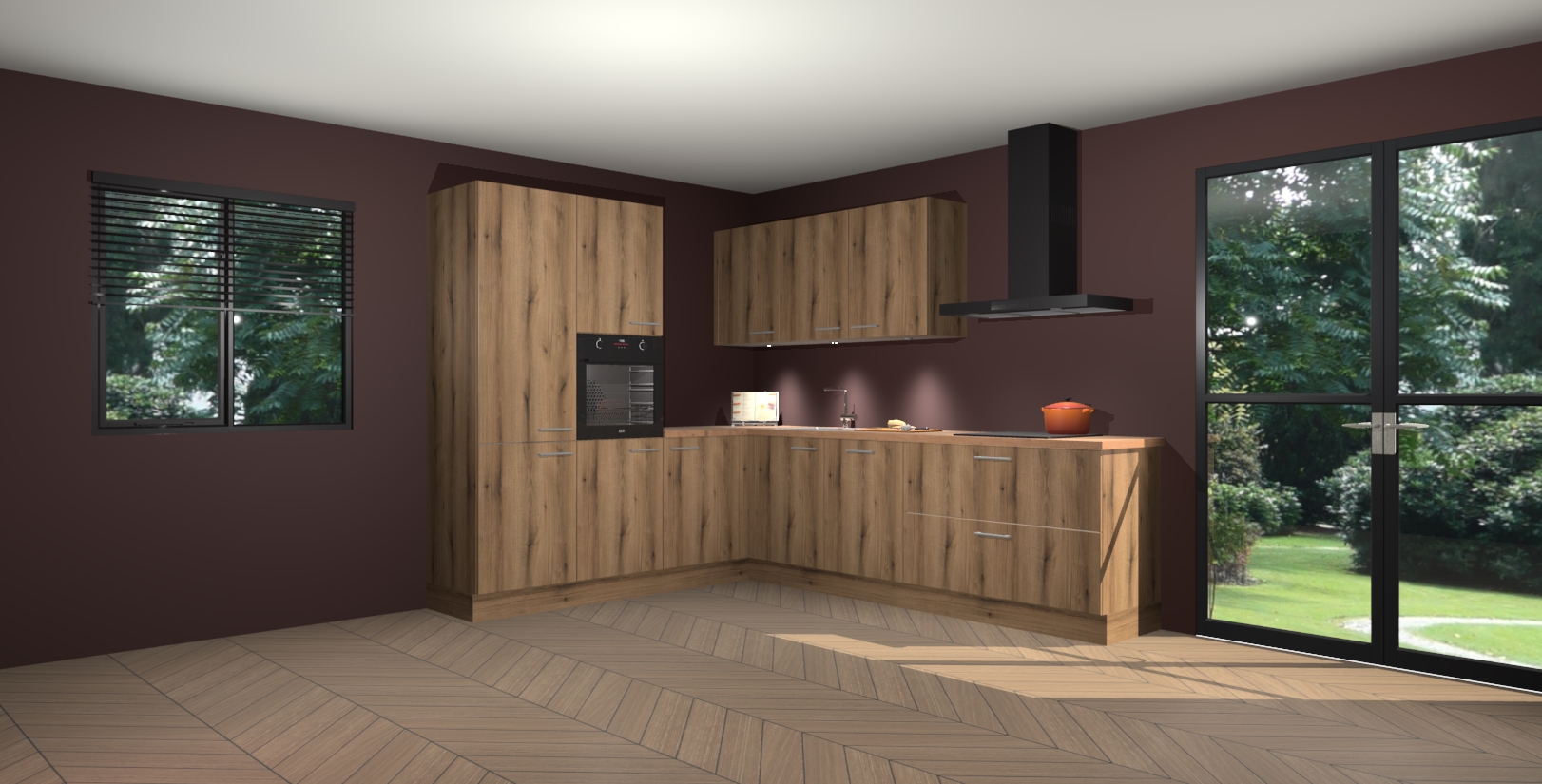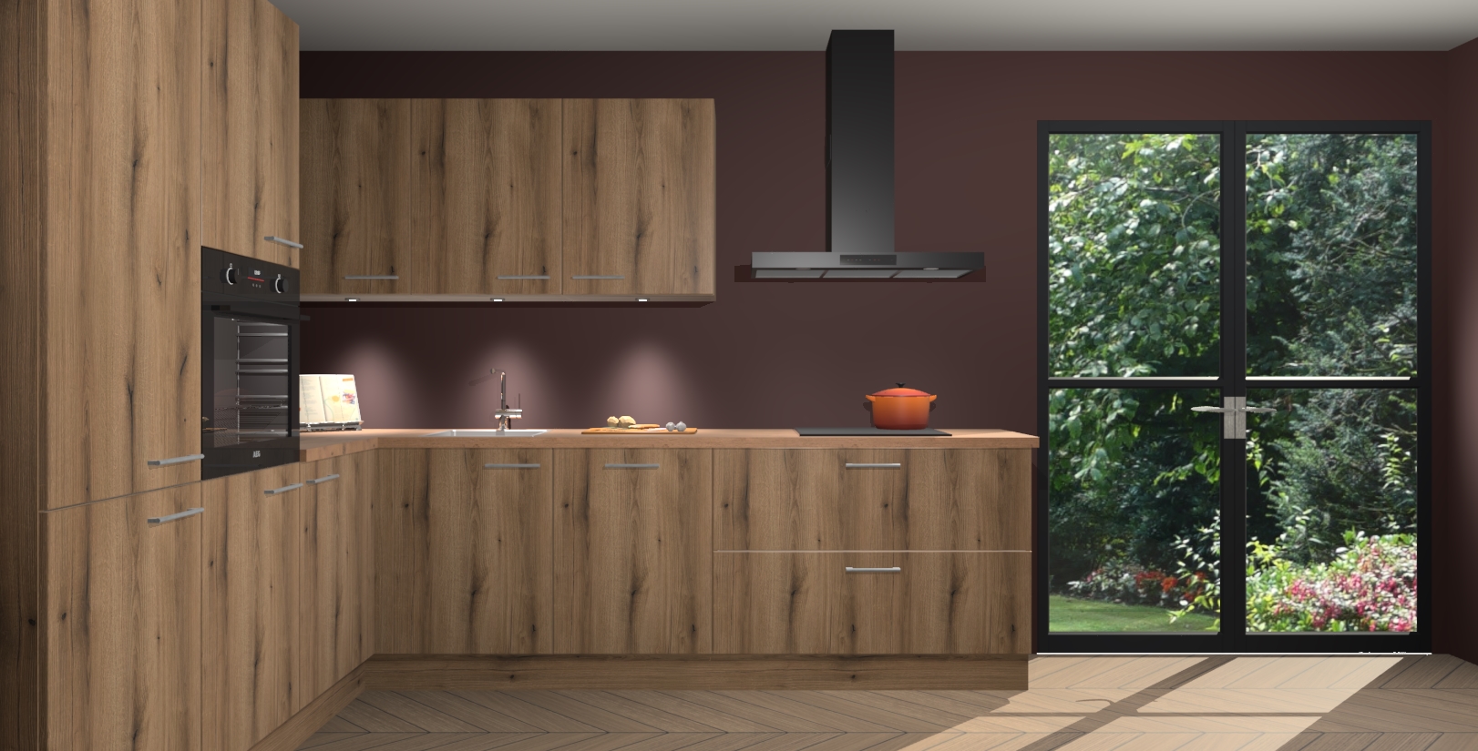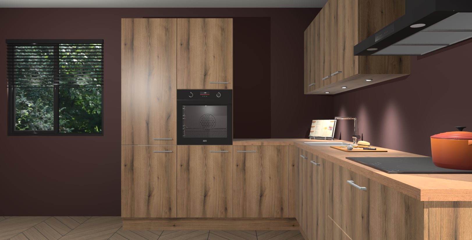 Maak kennis met de goud eiken keuken Parla - de perfecte aanvulling voor uw moderne keuken! Ervaar tijdloos design, elegantie en een chique uitstraling met onze zwarte handgrepen, soft-close deuren en veel opbergruimte. Dit alles wordt aangeboden tegen een vaste lage prijs voor ongeëvenaarde Duitse keukenkwaliteit!