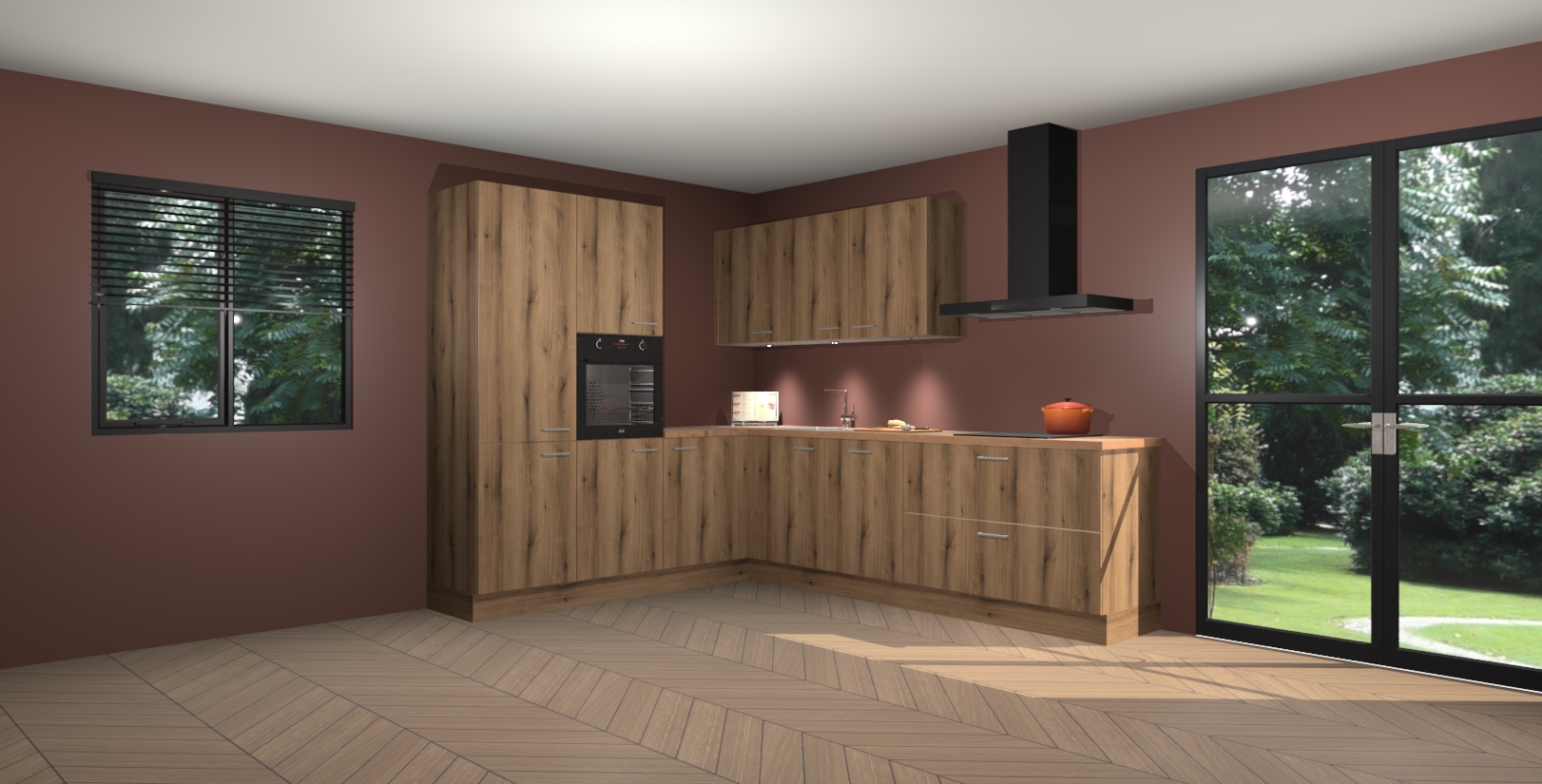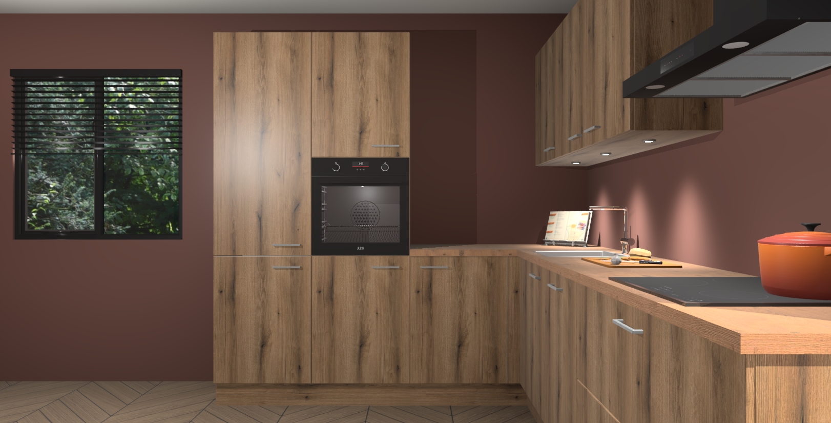 Maak kennis met de goud eiken keuken Parla - de perfecte aanvulling voor uw moderne keuken! Ervaar tijdloos design, elegantie en een chique uitstraling met onze zwarte handgrepen, soft-close deuren en veel opbergruimte. Dit alles wordt aangeboden tegen een vaste lage prijs voor ongeëvenaarde Duitse keukenkwaliteit!