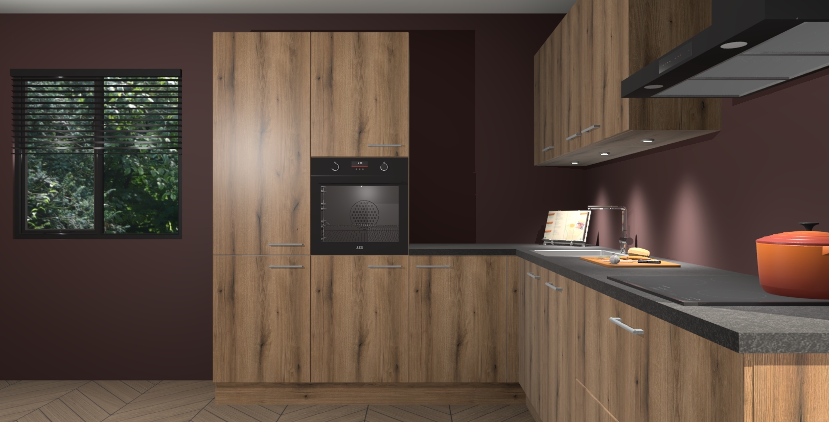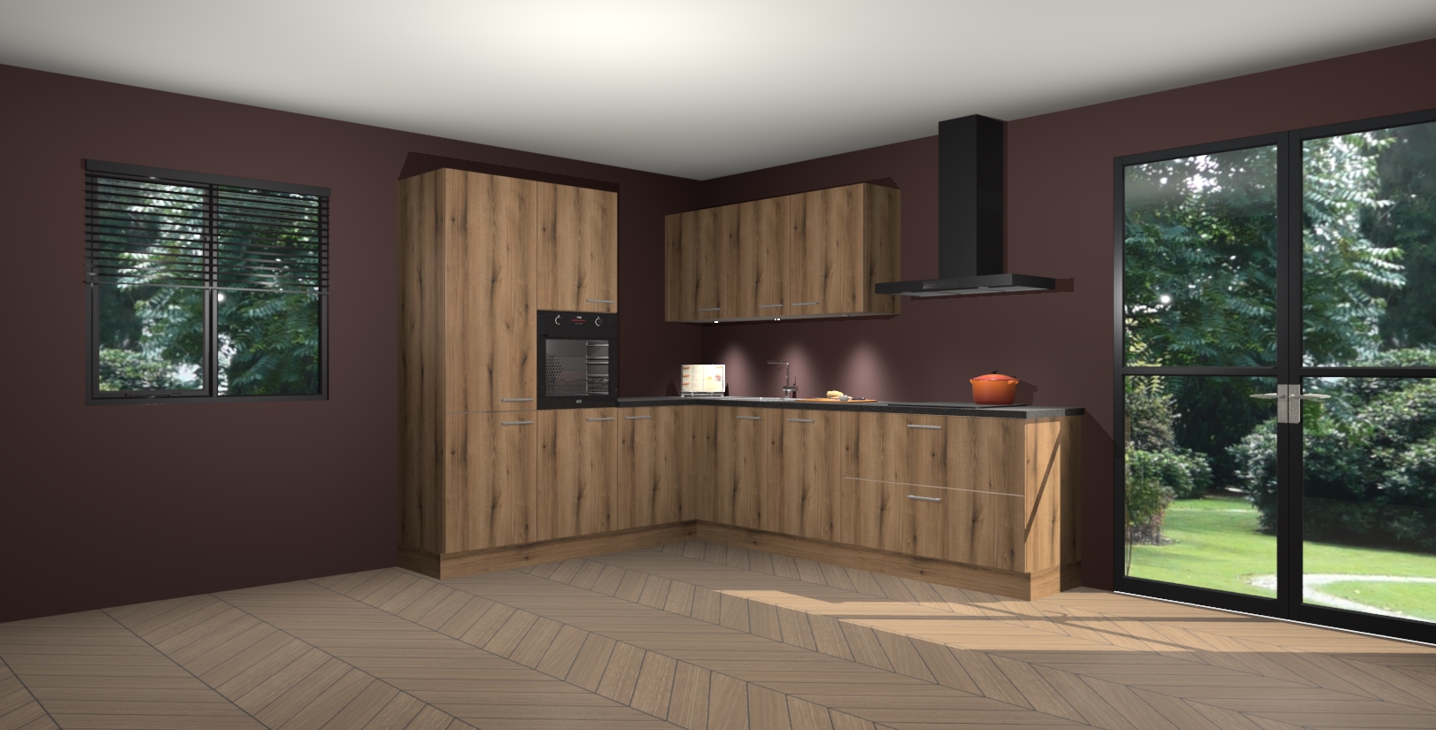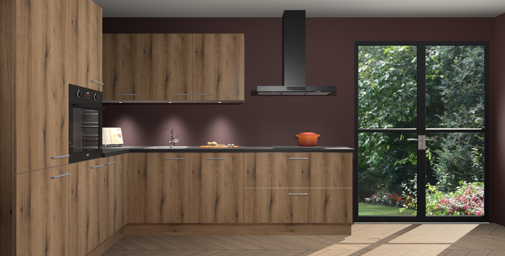 Maak kennis met de goud eiken keuken Parla - de perfecte aanvulling voor uw moderne keuken! Ervaar tijdloos design, elegantie en een chique uitstraling met onze zwarte handgrepen, soft-close deuren en veel opbergruimte. Dit alles wordt aangeboden tegen een vaste lage prijs voor ongeëvenaarde Duitse keukenkwaliteit!
