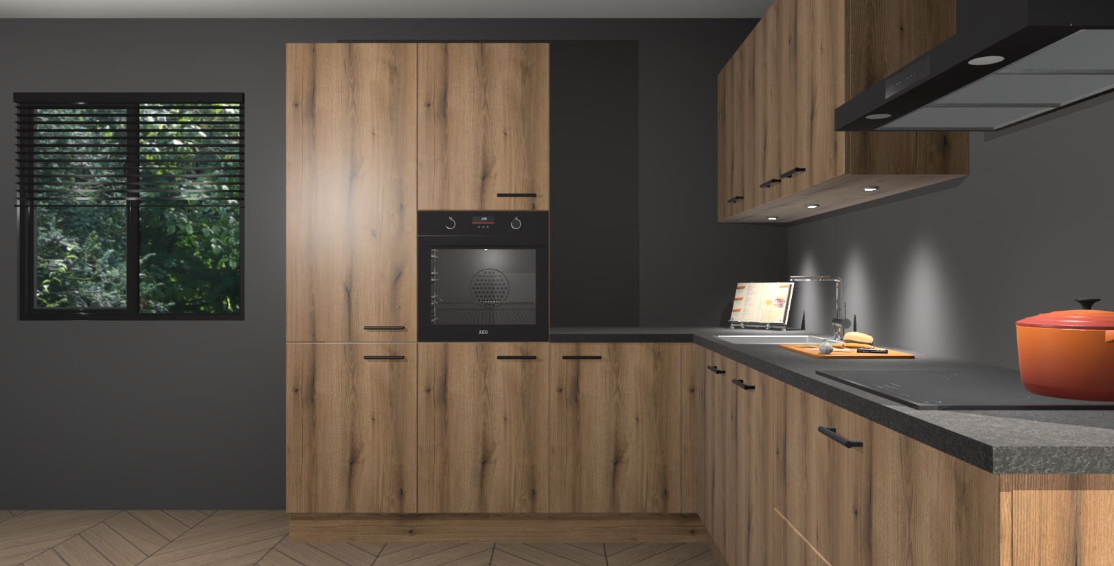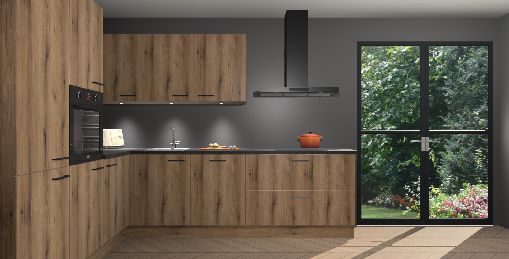 Maak kennis met de goud eiken keuken Parla - de perfecte aanvulling voor uw moderne keuken! Ervaar tijdloos design, elegantie en een chique uitstraling met onze zwarte handgrepen, soft-close deuren en veel opbergruimte. Dit alles wordt aangeboden tegen een vaste lage prijs voor ongeëvenaarde Duitse keukenkwaliteit!