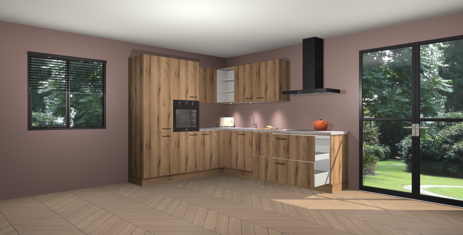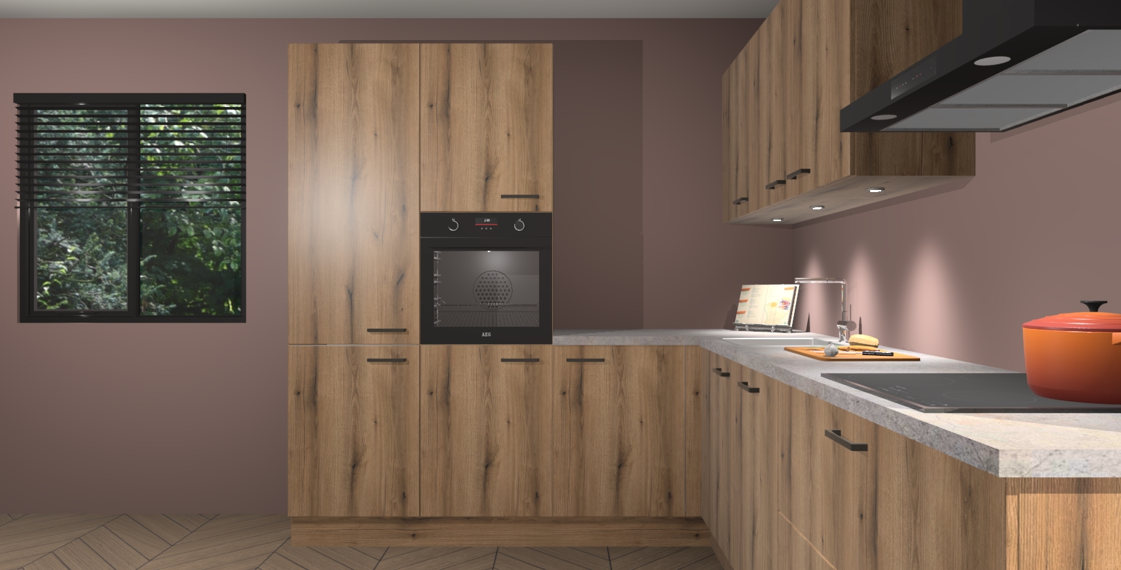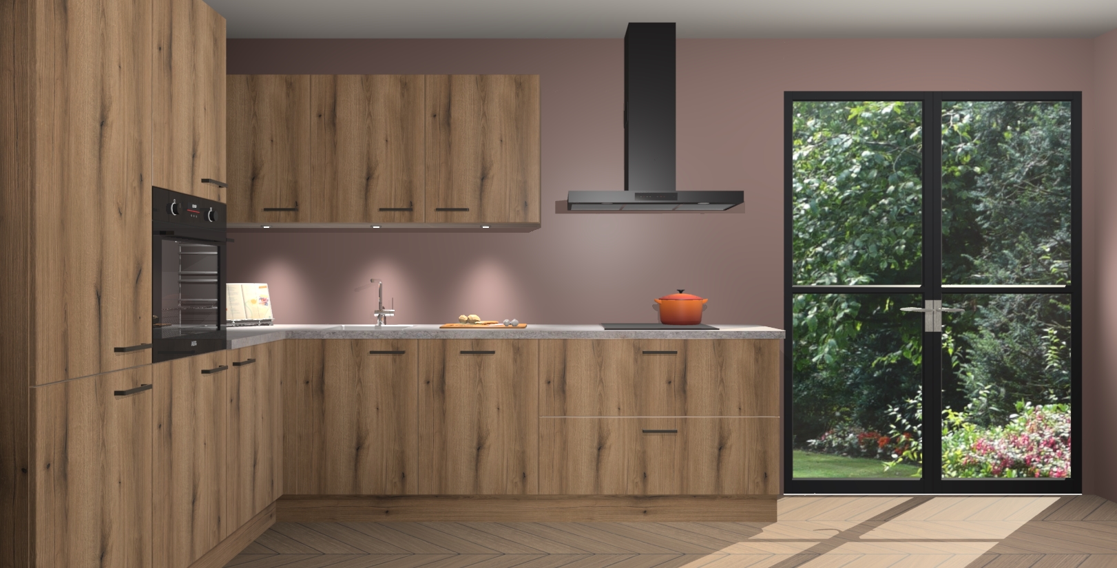 Maak kennis met de goud eiken keuken Parla - de perfecte aanvulling voor uw moderne keuken! Ervaar tijdloos design, elegantie en een chique uitstraling met onze zwarte handgrepen, soft-close deuren en veel opbergruimte. Dit alles wordt aangeboden tegen een vaste lage prijs voor ongeëvenaarde Duitse keukenkwaliteit!