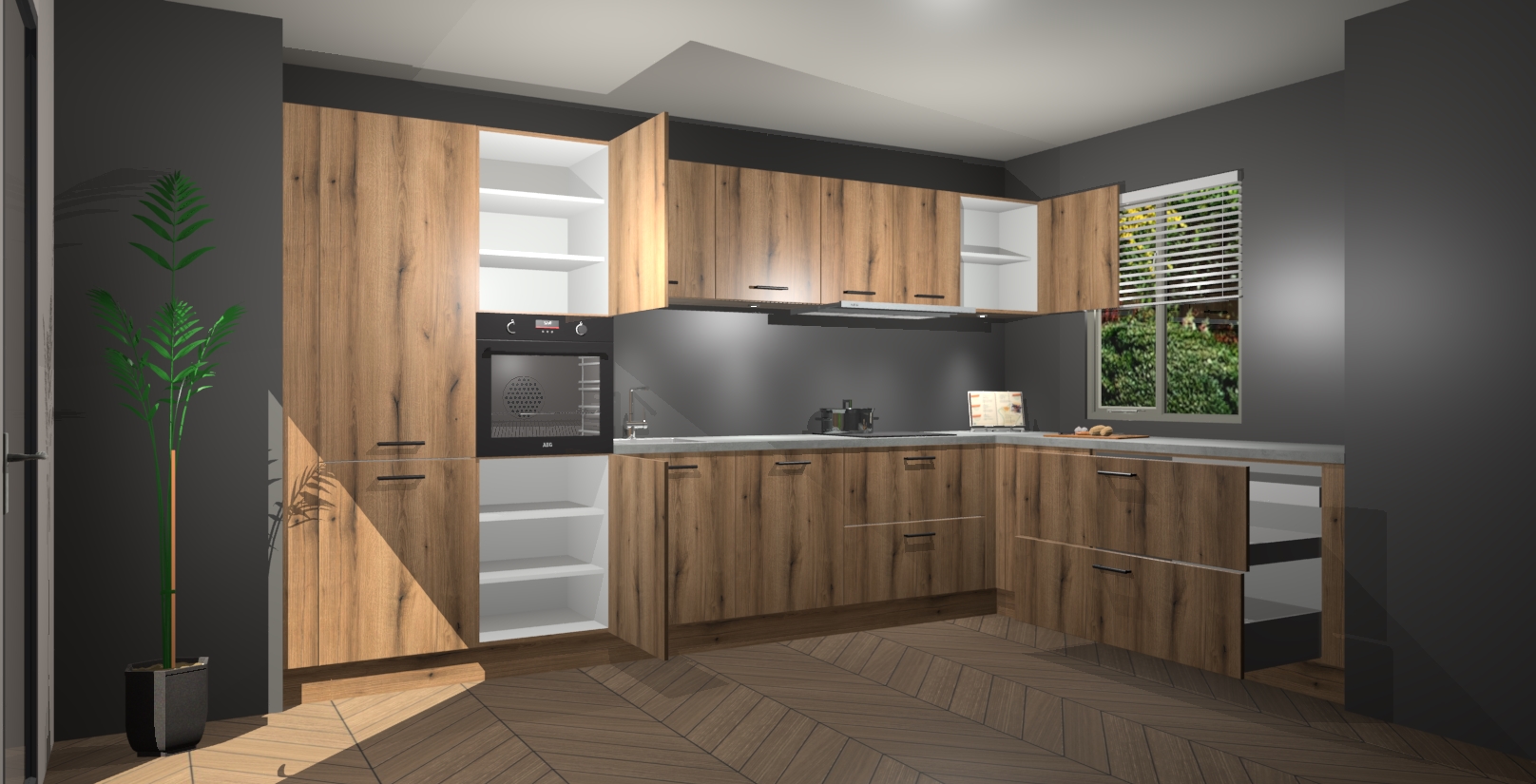 Verwelkom de natuurlijke warmte van de Goud Eiken keuken Petten in uw huis. Deze prachtige hoekkeuken met zijn moderne design en warme houten look geeft u meer dan genoeg opbergruimte om uw comfortabel te voelen in uw keuken. Geniet van soft-close deuren die al uw gasten het gevoel zullen geven dat ze zich in een luxueuze ruimte bevinden.