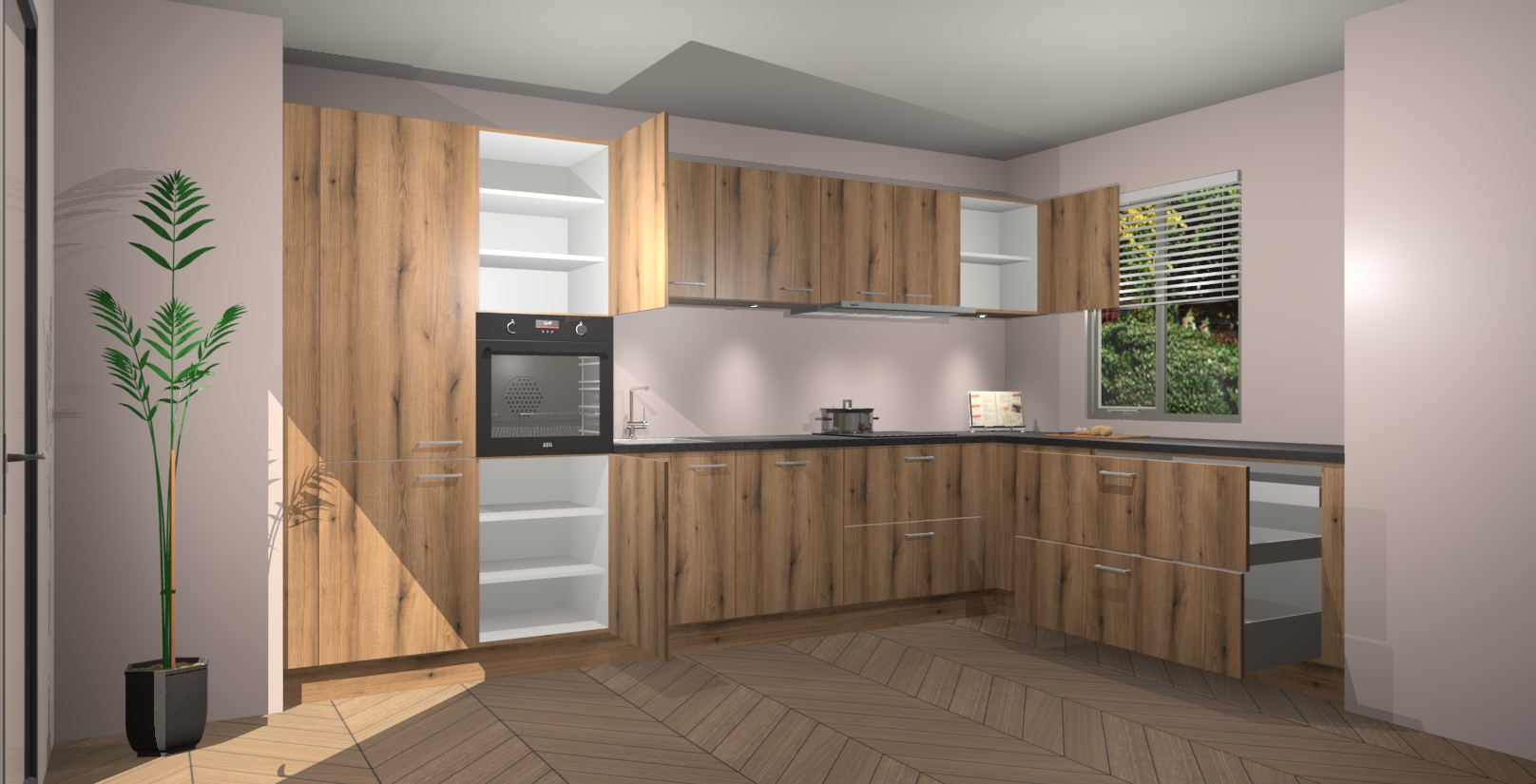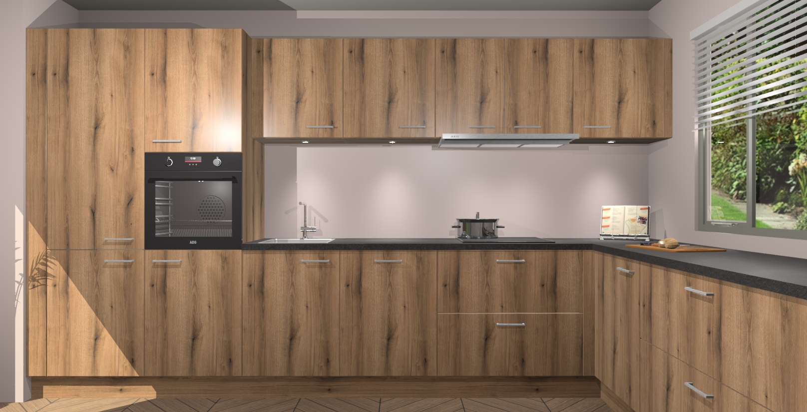 Uw droom van een sprookje binnenshuis is nu binnen handbereik met 5 inbouwapparaten in dit complete pakket: een oven, inductiekookplaat, afzuigkap, vaatwasser en koelkast! Haal deze geraffineerde en warme sfeer nu sneller in huis dan normaal - wij garanderen een snelle levering binnen 7 weken.