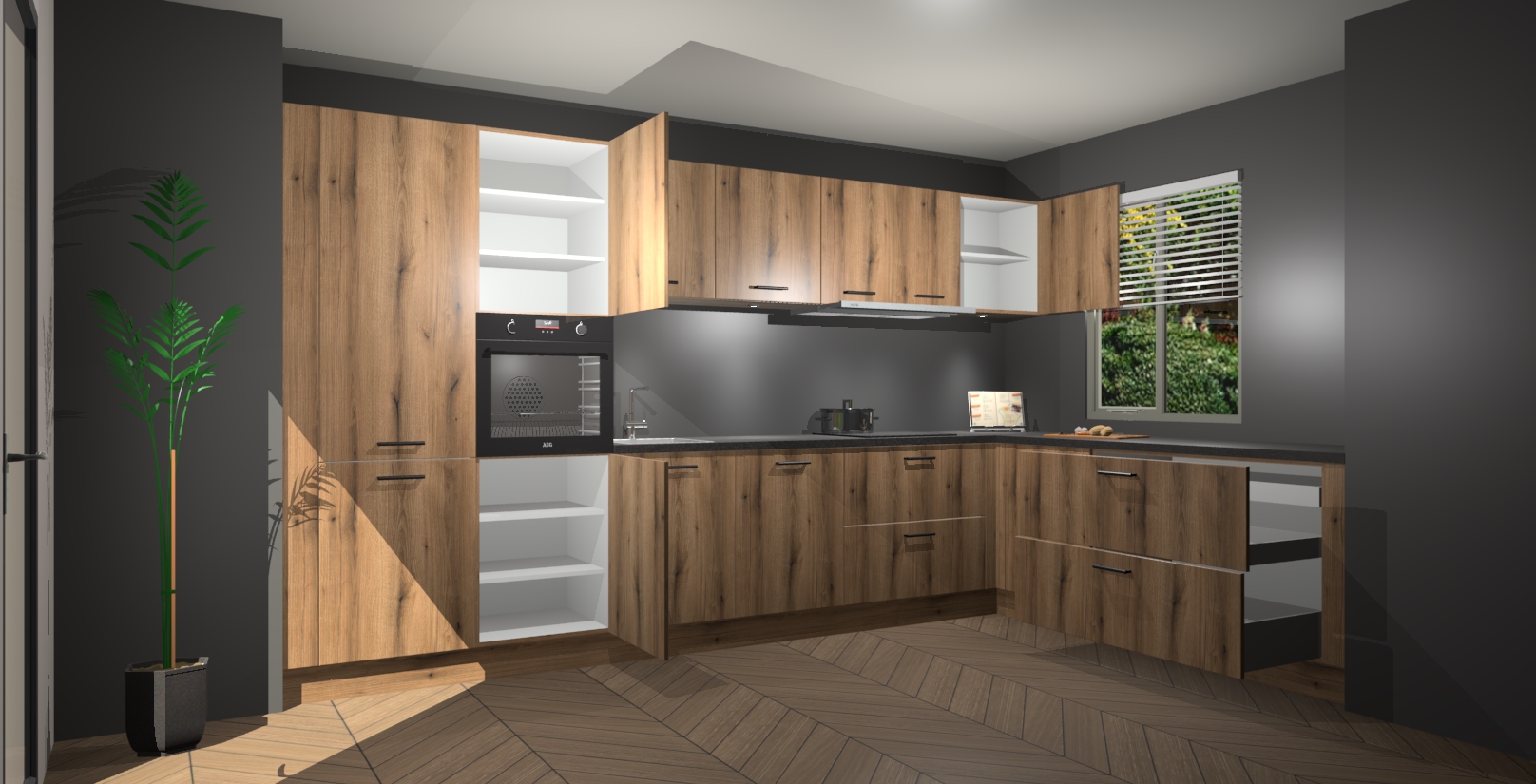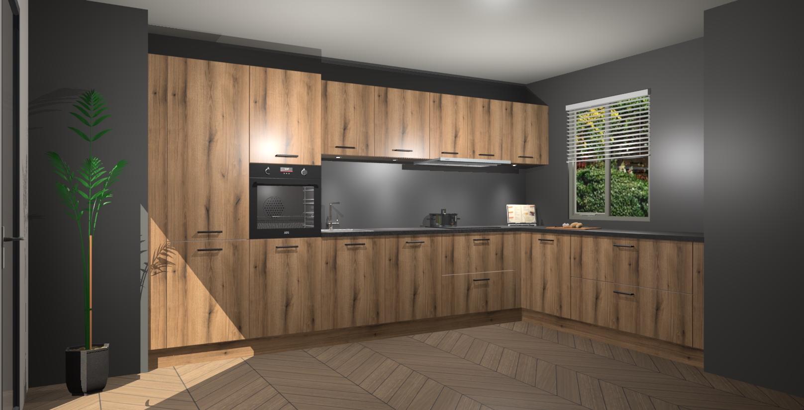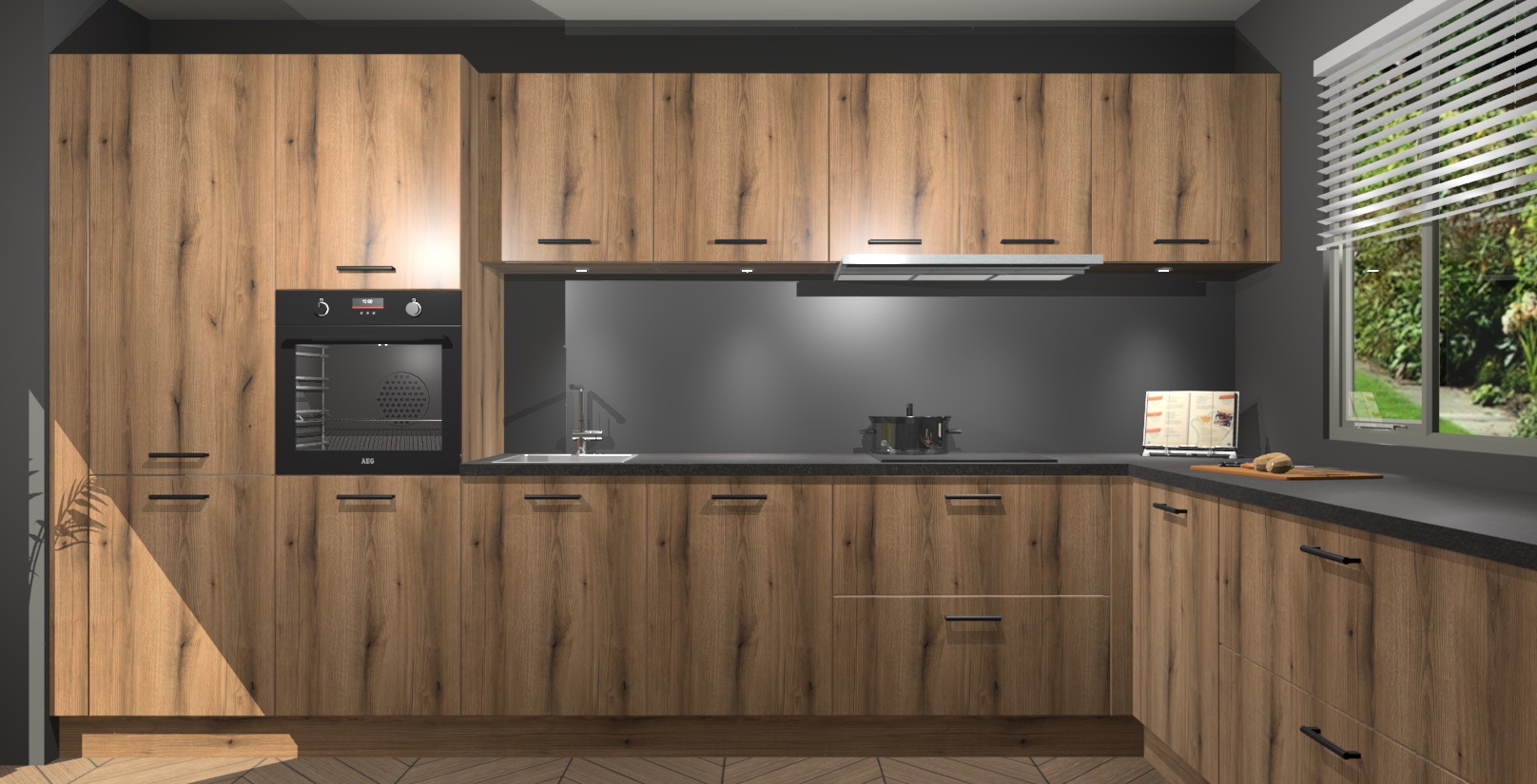Verwelkom de natuurlijke warmte van de Goud Eiken keuken Petten in uw huis. Deze prachtige hoekkeuken met zijn moderne design en warme houten look geeft u meer dan genoeg opbergruimte om uw comfortabel te voelen in uw keuken. Geniet van soft-close deuren die al uw gasten het gevoel zullen geven dat ze zich in een luxueuze ruimte bevinden.