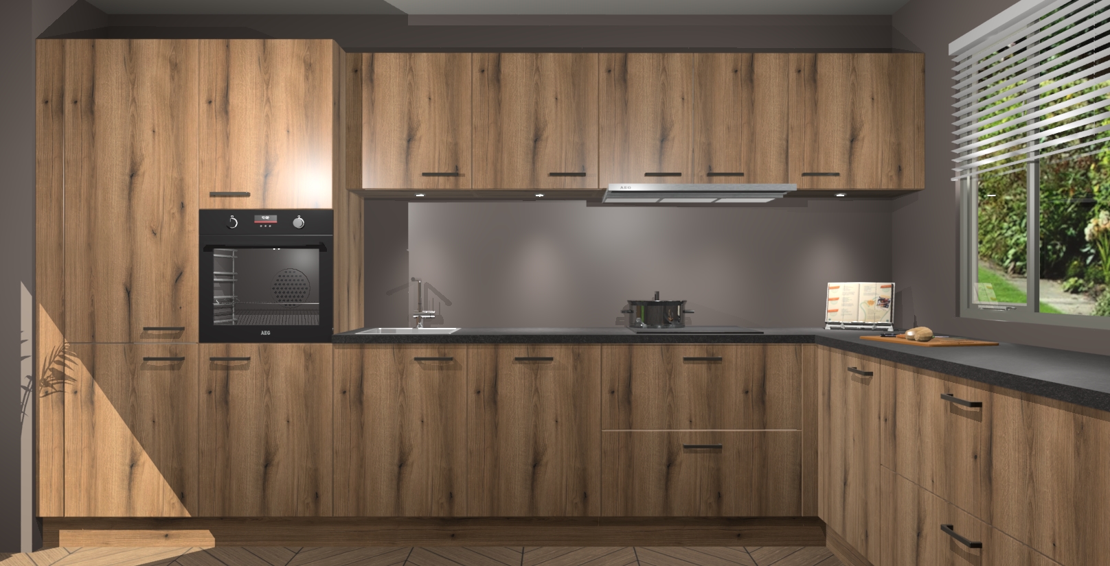 Uw droom van een sprookje binnenshuis is nu binnen handbereik met 5 inbouwapparaten in dit complete pakket: een oven, inductiekookplaat, afzuigkap, vaatwasser en koelkast! Haal deze geraffineerde en warme sfeer nu sneller in huis dan normaal - wij garanderen een snelle levering binnen 7 weken.