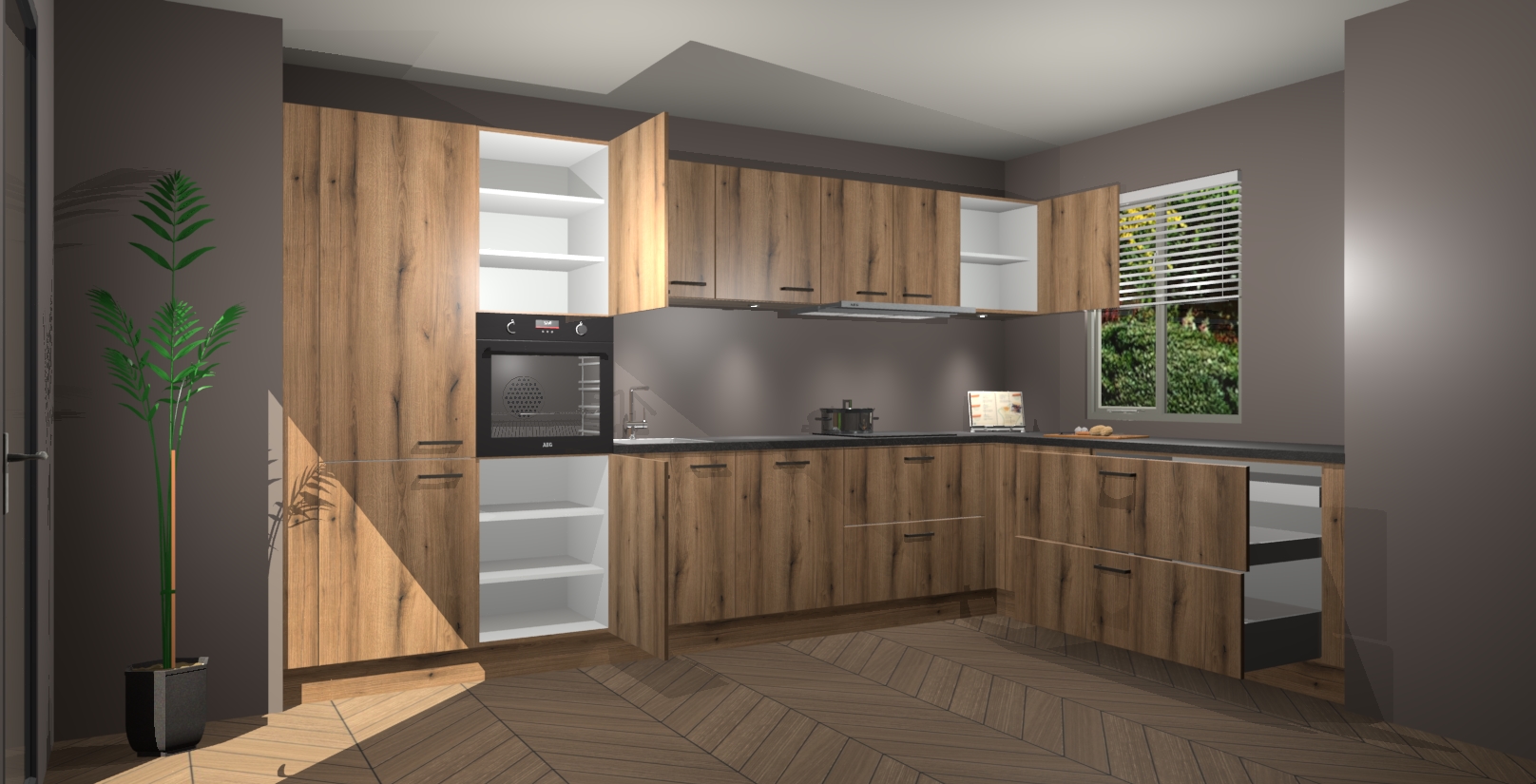 Verwelkom de natuurlijke warmte van de Goud Eiken keuken Petten in uw huis. Deze prachtige hoekkeuken met zijn moderne design en warme houten look geeft u meer dan genoeg opbergruimte om uw comfortabel te voelen in uw keuken. Geniet van soft-close deuren die al uw gasten het gevoel zullen geven dat ze zich in een luxueuze ruimte bevinden.