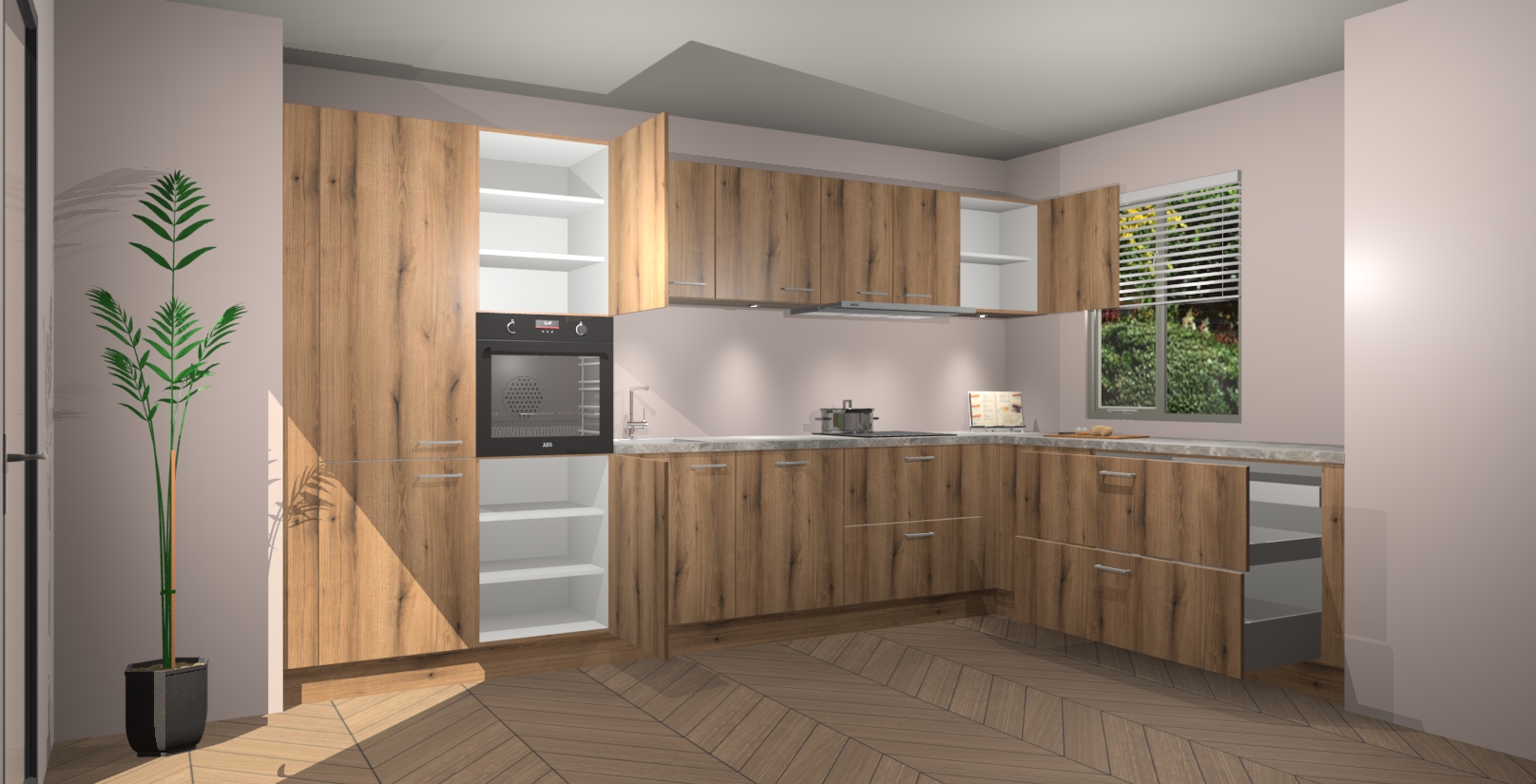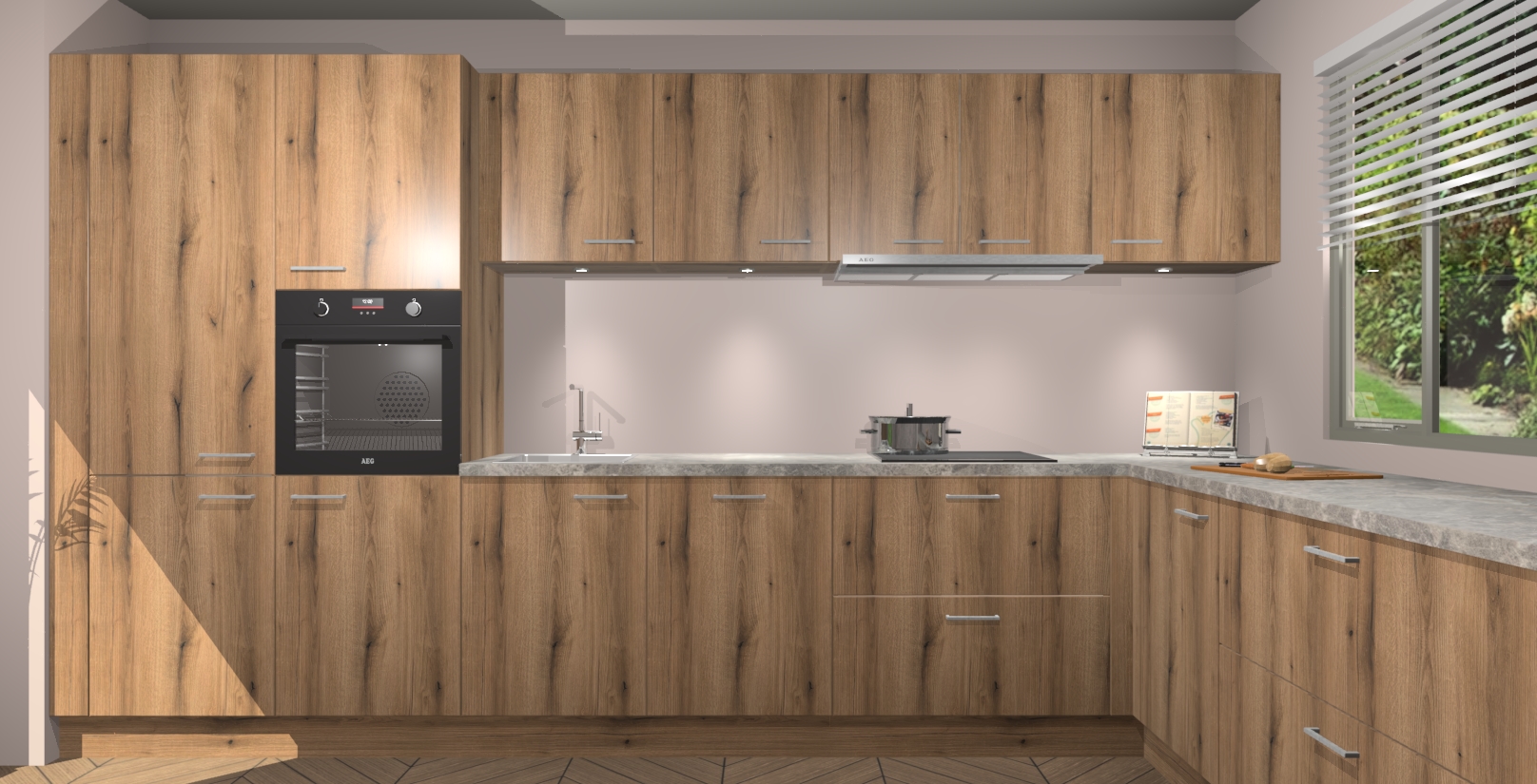 Uw droom van een sprookje binnenshuis is nu binnen handbereik met 5 inbouwapparaten in dit complete pakket: een oven, inductiekookplaat, afzuigkap, vaatwasser en koelkast! Haal deze geraffineerde en warme sfeer nu sneller in huis dan normaal - wij garanderen een snelle levering binnen 7 weken.