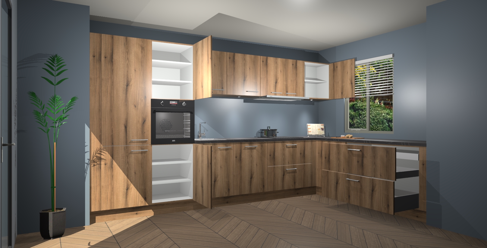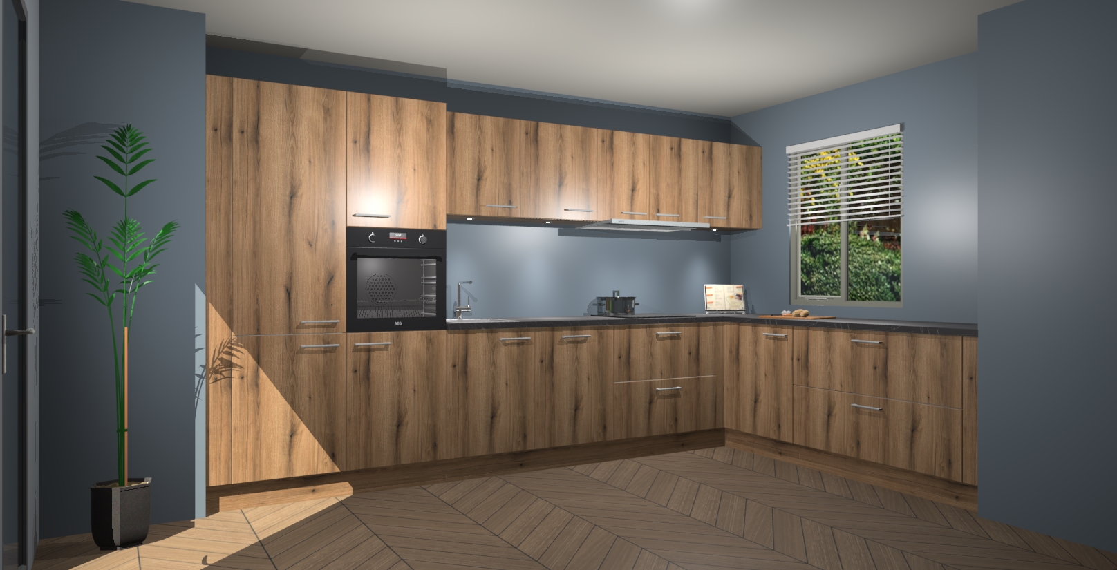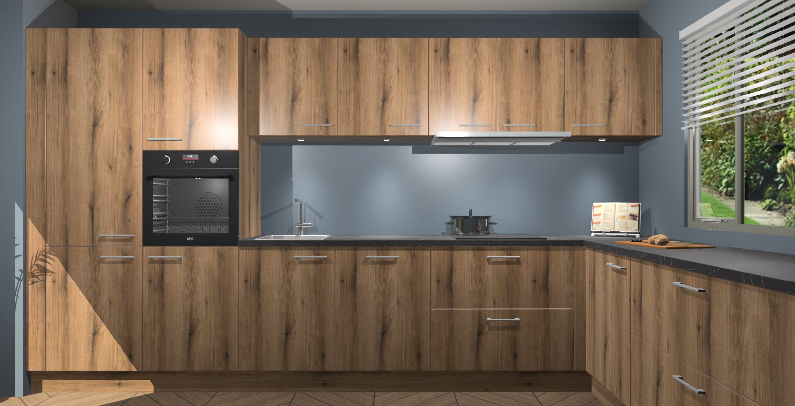 Verwelkom de natuurlijke warmte van de Goud Eiken keuken Petten in uw huis. Deze prachtige hoekkeuken met zijn moderne design en warme houten look geeft u meer dan genoeg opbergruimte om uw comfortabel te voelen in uw keuken. Geniet van soft-close deuren die al uw gasten het gevoel zullen geven dat ze zich in een luxueuze ruimte bevinden.