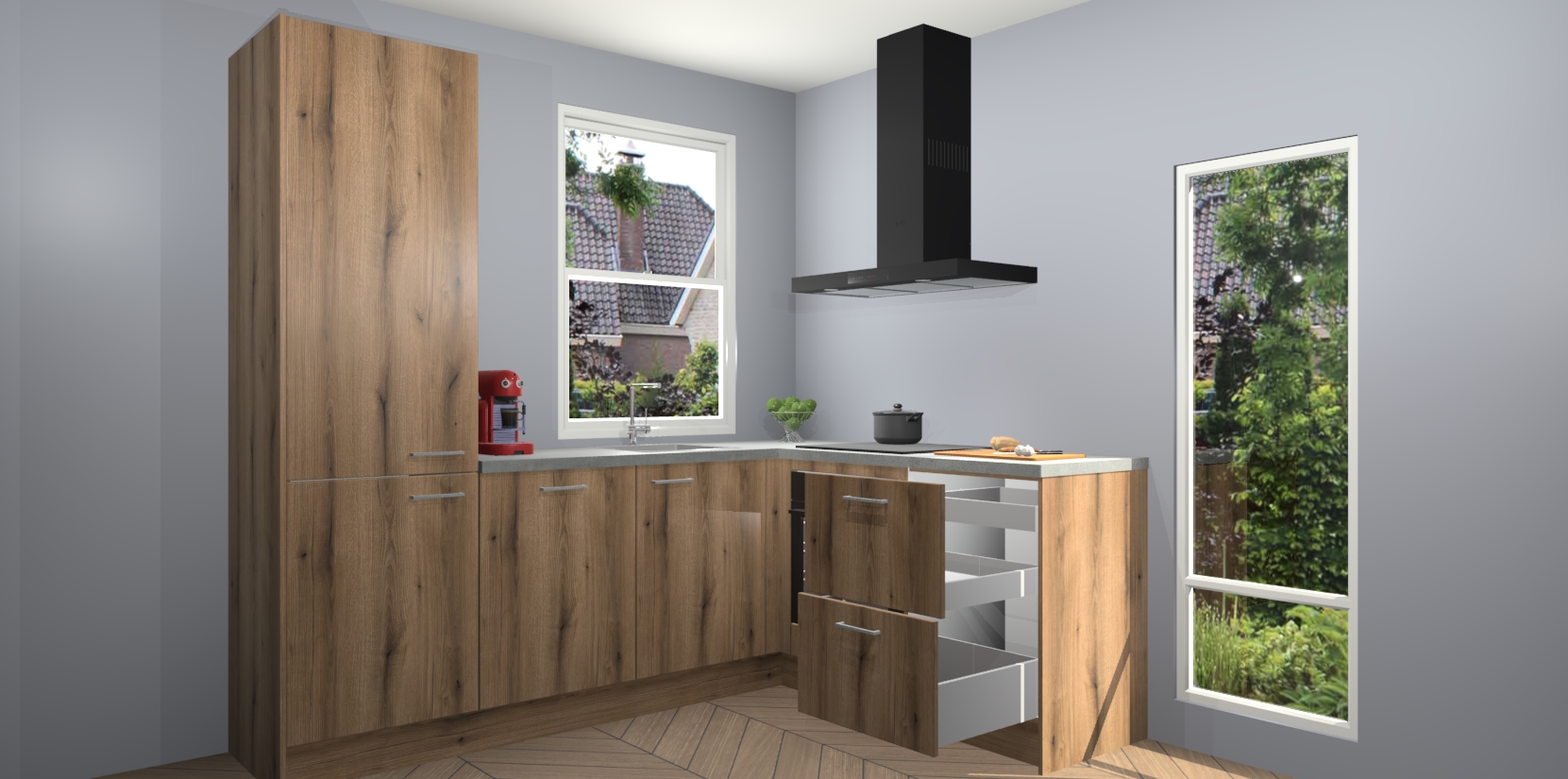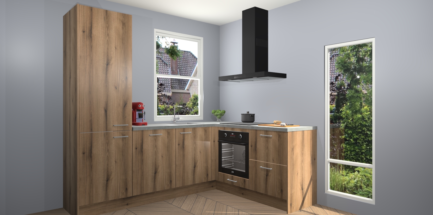 De prachtige Goud Eiken keuken Phuket is de perfecte keuze als u op zoek bent naar een moderne hoekkeuken met alle luxe en comfort die u kunt verwachten! De uitstraling in het houtlook-design draagt bij aan de warme sfeer die u nu al voelt wanneer u er naar kijkt. Heeft u genoeg van ouderwetse keukens? Probeer dan direct deze moderne, mooie hoekkeukens en laat iedereen verbluft achter!