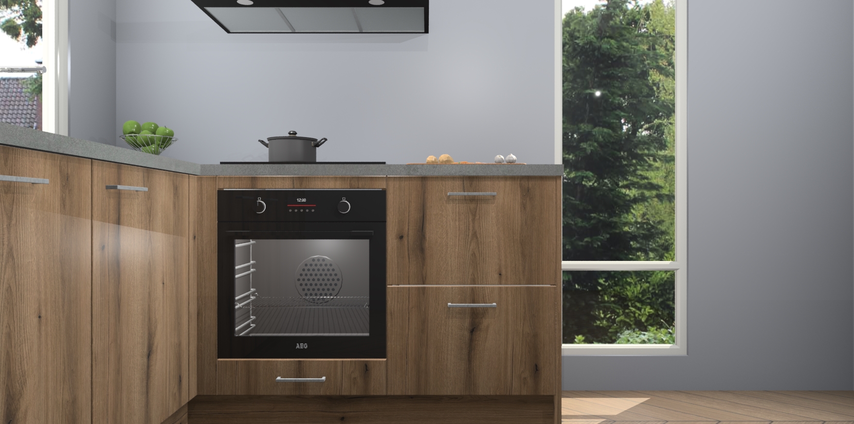 De Goud Eiken keuken Phuket heeft alles wat u maar kunt wensen. Niet alleen zijn er softclose deuren, maar ook 5 ingebouwde apparaten: een oven, inductiekookplaat, afzuigkap, vaatwasser en koelkast - waarbij u later gemakkelijk naar het AEG merk, van inductiekookplaat naar kookplaat met geïntegreerde afzuiging of van oven naar combimagnetron kunt upgraden. Dat alles tegen een vast laag tarief! Bovendien geeft de Goud Eiken keuken Phuket supersnelle levering van 7 weken. Echt iets voor u als u er niet op wilt wachten om het resultaat te zien in eigen keuken!