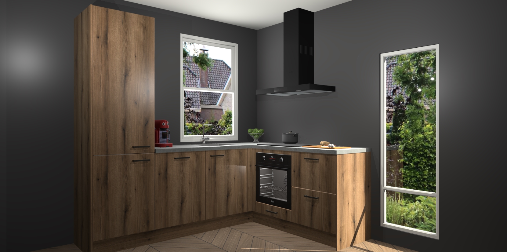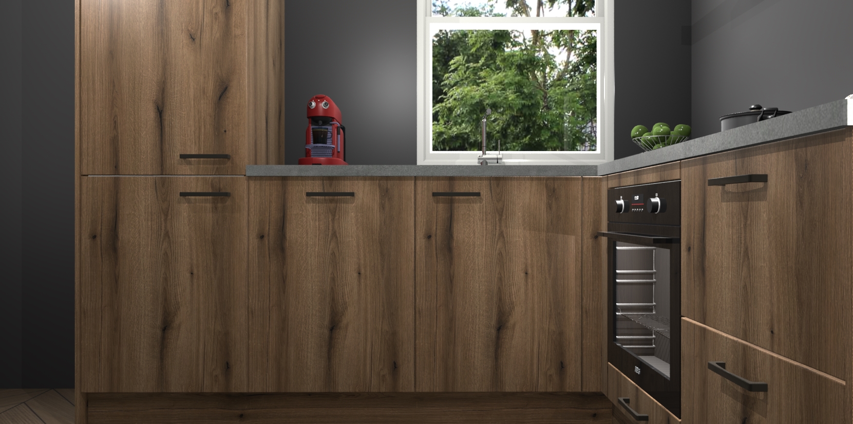 De prachtige Goud Eiken keuken Phuket is de perfecte keuze als u op zoek bent naar een moderne hoekkeuken met alle luxe en comfort die u kunt verwachten! De uitstraling in het houtlook-design draagt bij aan de warme sfeer die u nu al voelt wanneer u er naar kijkt. Heeft u genoeg van ouderwetse keukens? Probeer dan direct deze moderne, mooie hoekkeukens en laat iedereen verbluft achter!