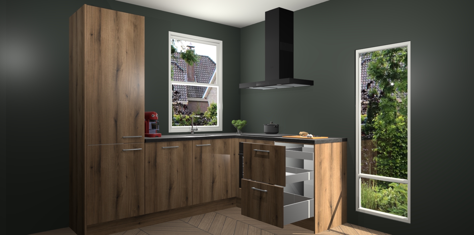 De prachtige Goud Eiken keuken Phuket is de perfecte keuze als u op zoek bent naar een moderne hoekkeuken met alle luxe en comfort die u kunt verwachten! De uitstraling in het houtlook-design draagt bij aan de warme sfeer die u nu al voelt wanneer u er naar kijkt. Heeft u genoeg van ouderwetse keukens? Probeer dan direct deze moderne, mooie hoekkeukens en laat iedereen verbluft achter!