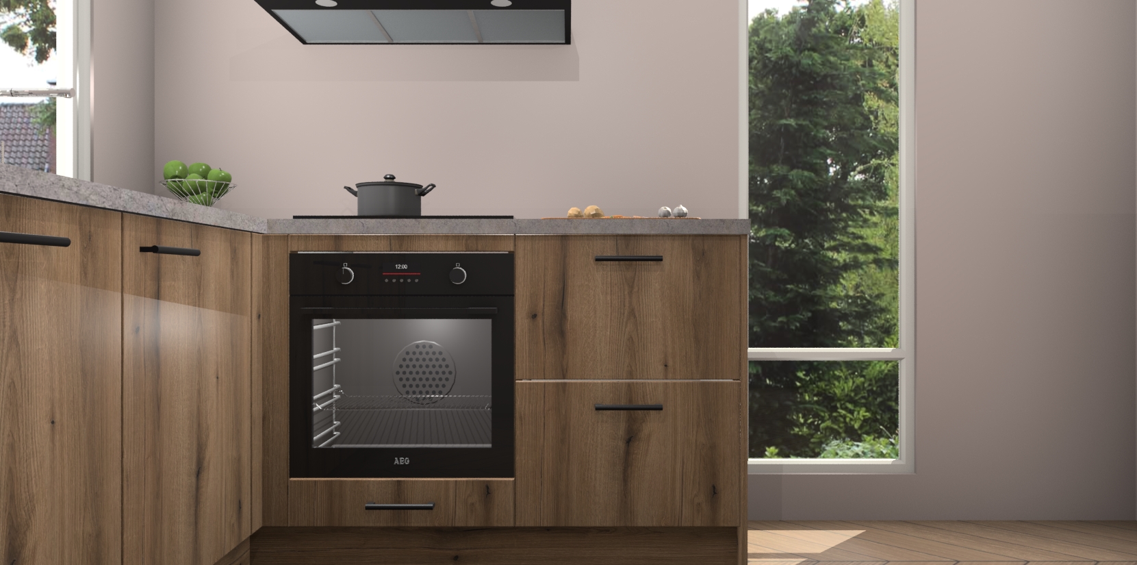 De Goud Eiken keuken Phuket heeft alles wat u maar kunt wensen. Niet alleen zijn er softclose deuren, maar ook 5 ingebouwde apparaten: een oven, inductiekookplaat, afzuigkap, vaatwasser en koelkast - waarbij u later gemakkelijk naar het AEG merk, van inductiekookplaat naar kookplaat met geïntegreerde afzuiging of van oven naar combimagnetron kunt upgraden. Dat alles tegen een vast laag tarief! Bovendien geeft de Goud Eiken keuken Phuket supersnelle levering van 7 weken. Echt iets voor u als u er niet op wilt wachten om het resultaat te zien in eigen keuken!