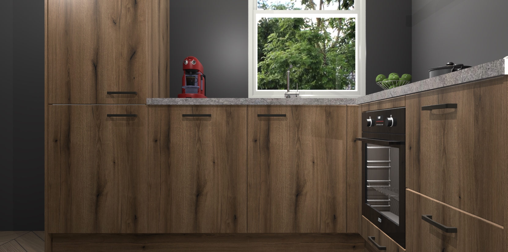 De prachtige Goud Eiken keuken Phuket is de perfecte keuze als u op zoek bent naar een moderne hoekkeuken met alle luxe en comfort die u kunt verwachten! De uitstraling in het houtlook-design draagt bij aan de warme sfeer die u nu al voelt wanneer u er naar kijkt. Heeft u genoeg van ouderwetse keukens? Probeer dan direct deze moderne, mooie hoekkeukens en laat iedereen verbluft achter!