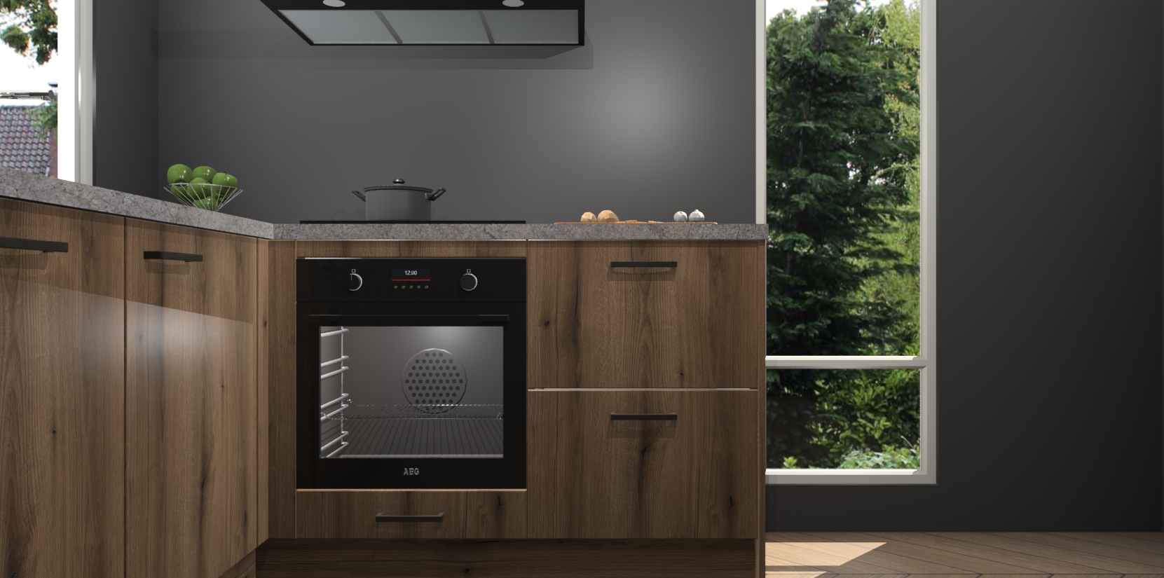 De Goud Eiken keuken Phuket heeft alles wat u maar kunt wensen. Niet alleen zijn er softclose deuren, maar ook 5 ingebouwde apparaten: een oven, inductiekookplaat, afzuigkap, vaatwasser en koelkast - waarbij u later gemakkelijk naar het AEG merk, van inductiekookplaat naar kookplaat met geïntegreerde afzuiging of van oven naar combimagnetron kunt upgraden. Dat alles tegen een vast laag tarief! Bovendien geeft de Goud Eiken keuken Phuket supersnelle levering van 7 weken. Echt iets voor u als u er niet op wilt wachten om het resultaat te zien in eigen keuken!