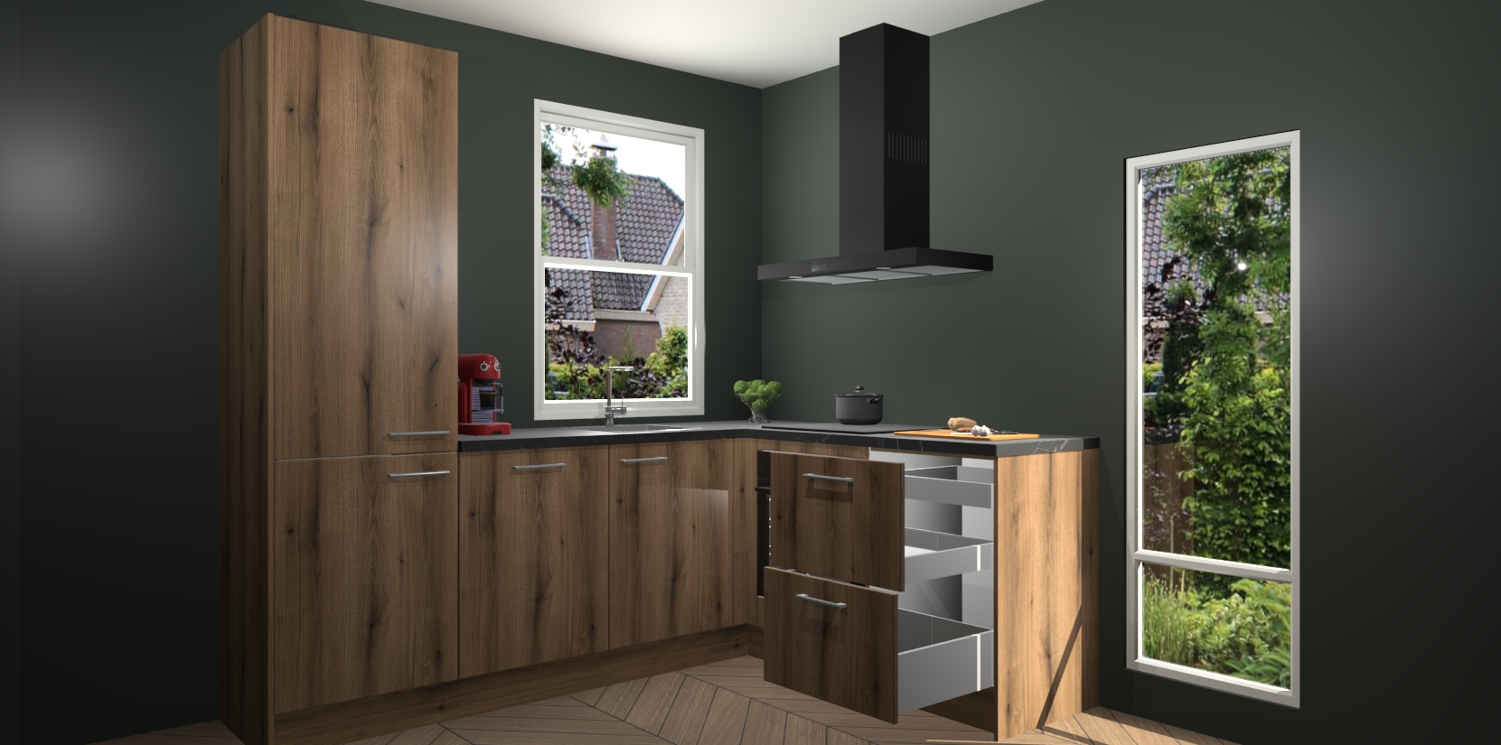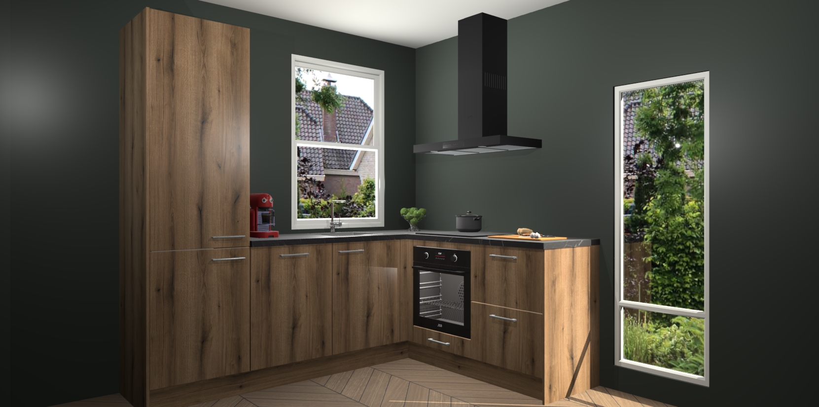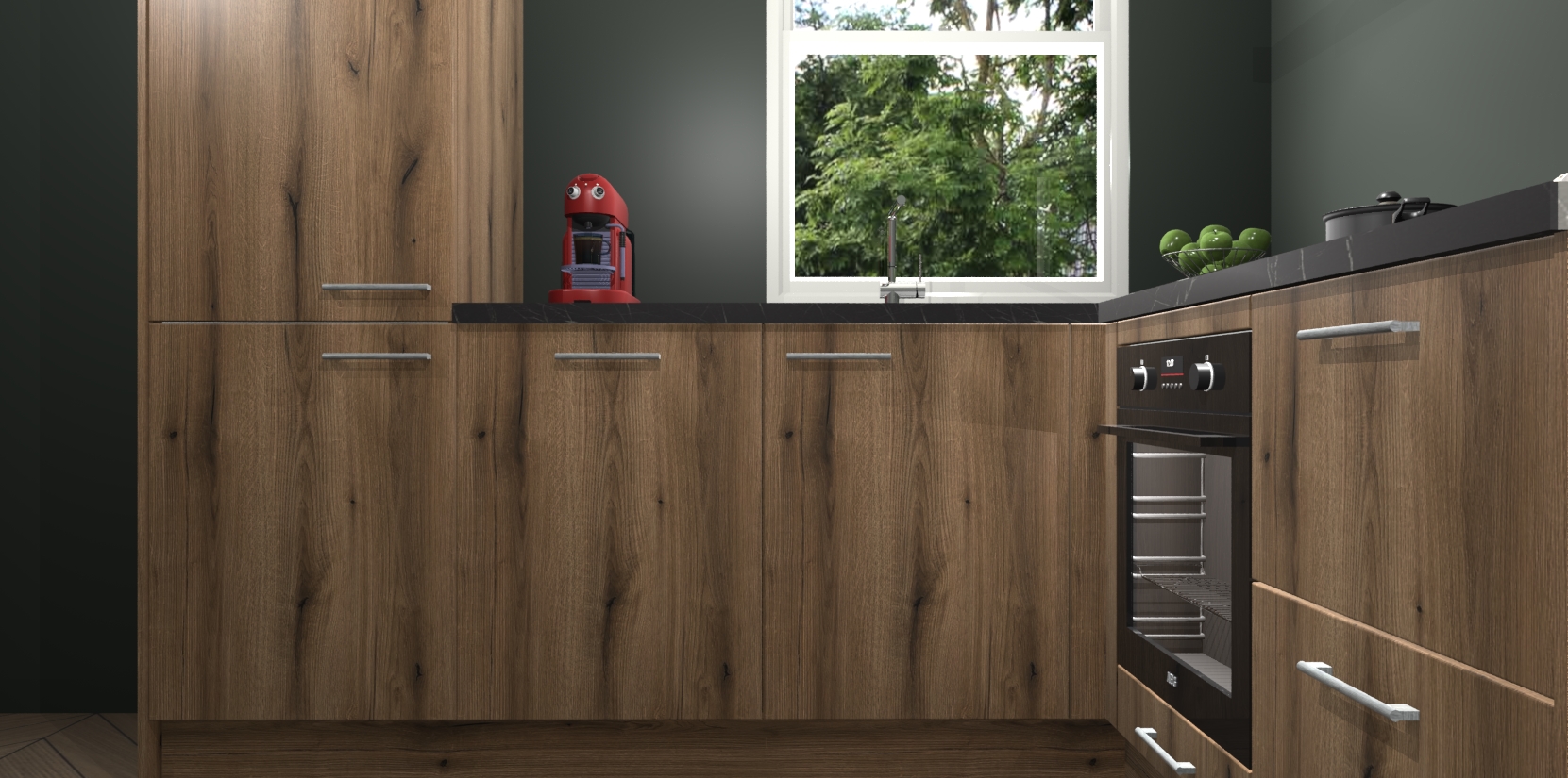 De prachtige Goud Eiken keuken Phuket is de perfecte keuze als u op zoek bent naar een moderne hoekkeuken met alle luxe en comfort die u kunt verwachten! De uitstraling in het houtlook-design draagt bij aan de warme sfeer die u nu al voelt wanneer u er naar kijkt. Heeft u genoeg van ouderwetse keukens? Probeer dan direct deze moderne, mooie hoekkeukens en laat iedereen verbluft achter!