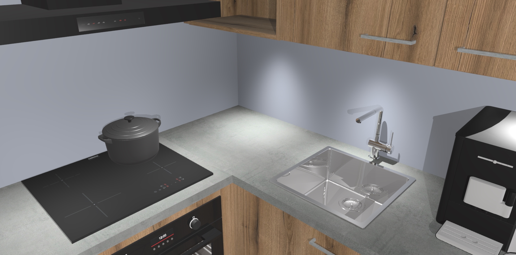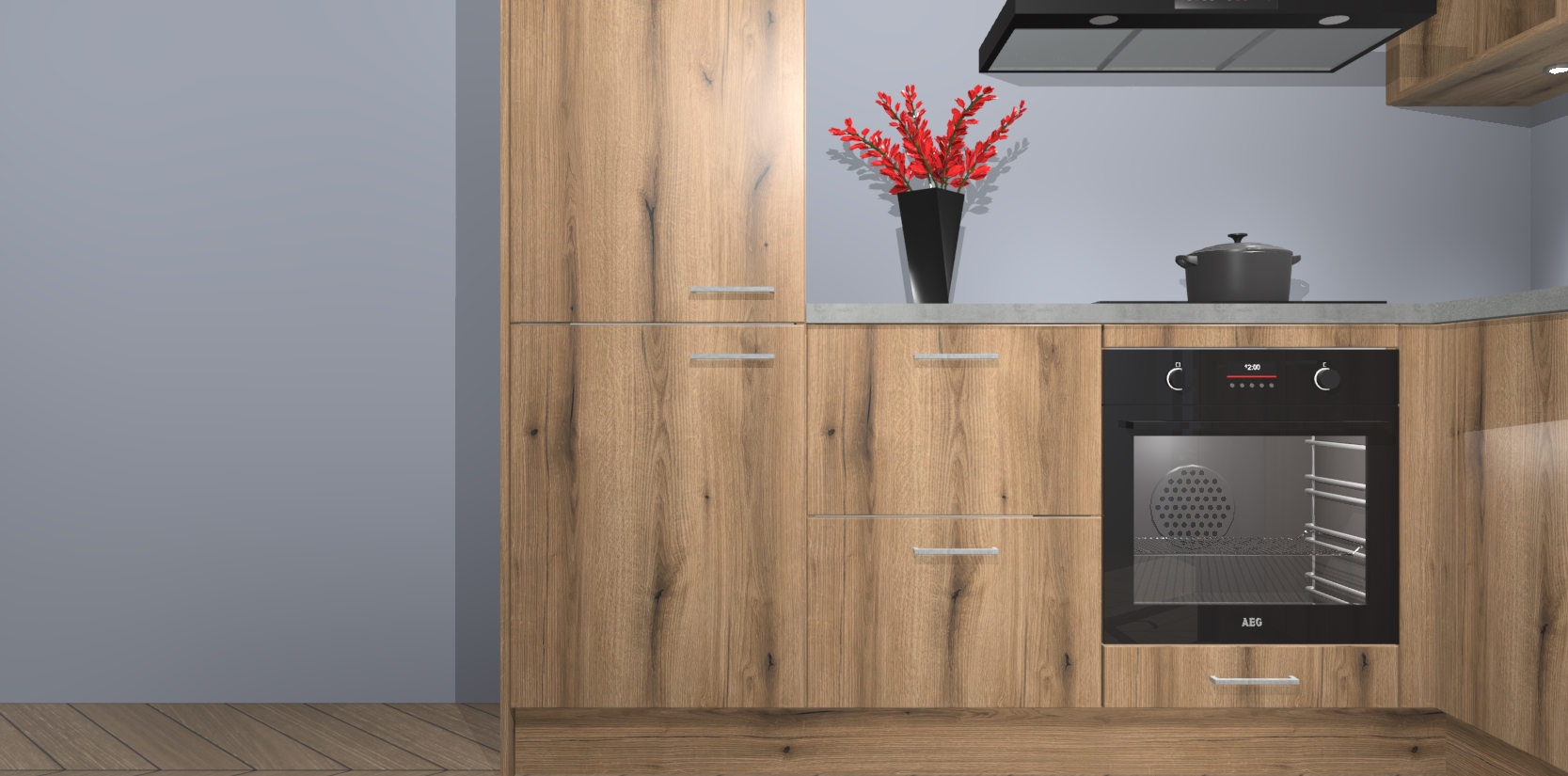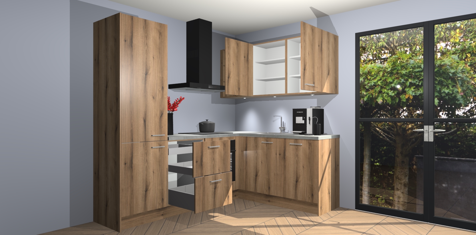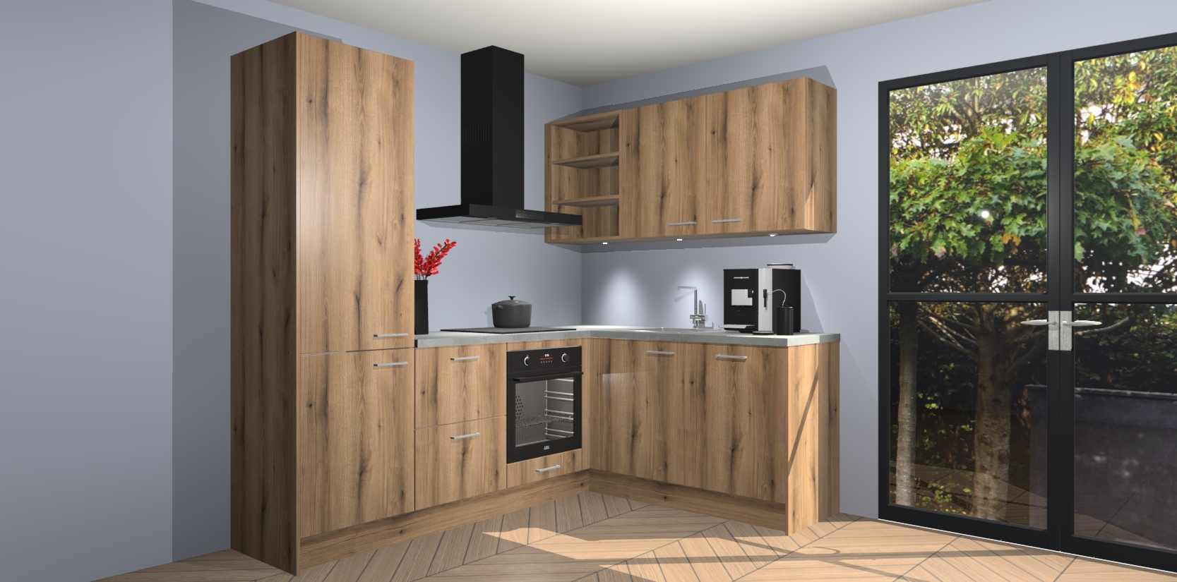 Wauw, dit is de Goud Eiken keuken Pilsen! U kunt gerust zeggen dat u elegantie combineert met functionaliteit met deze keuken. Met een modern en chique ontwerp is de keuken precies wat u nodig heeft om uw ruimte te verfraaien. De binnenzijde van de kasten is in dezelfde donkere kleur als de buitenzijde voor een uniforme look, compleet met softclose-kasten die stil sluiten.
