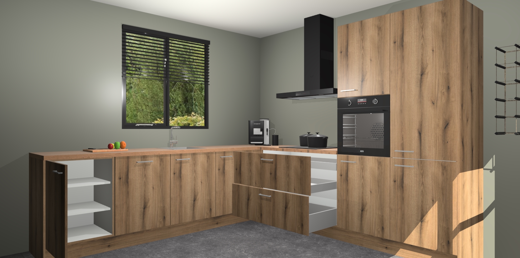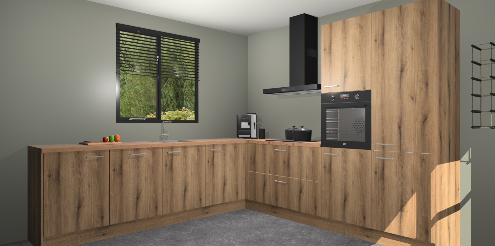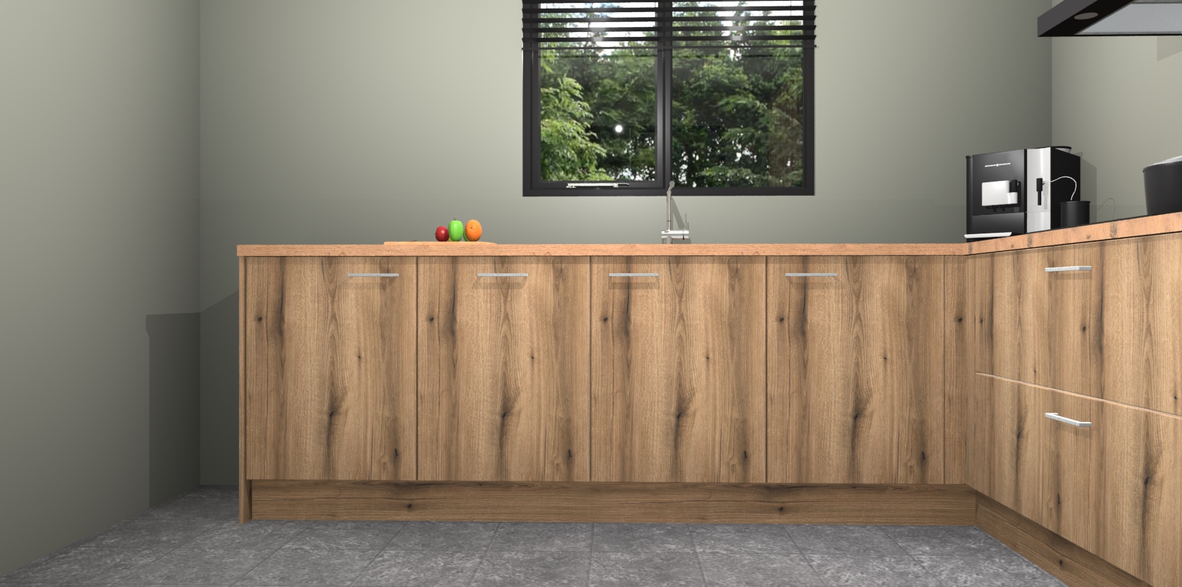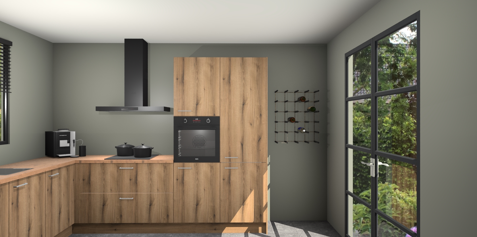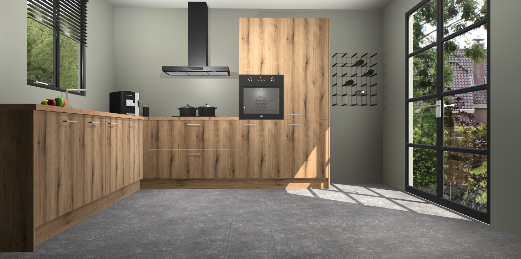 De Goud Eiken keuken Porto heeft 5 ingebouwde apparaten - een oven, inductiekookplaat, afzuigkap, vaatwasser en koelkast - waarmee u in een handomdraai heerlijke gerechten bereidt. Soft-close deuren zorgen voor nog meer functionaliteit en gemak. En dit alles voor een onverslaanbaar vaste prijs. En als u nu bestelt, duurt de levering maar 7 weken! Wat nog ongelooflijker is, is dat onze kasten voor gemonteerd worden geleverd.