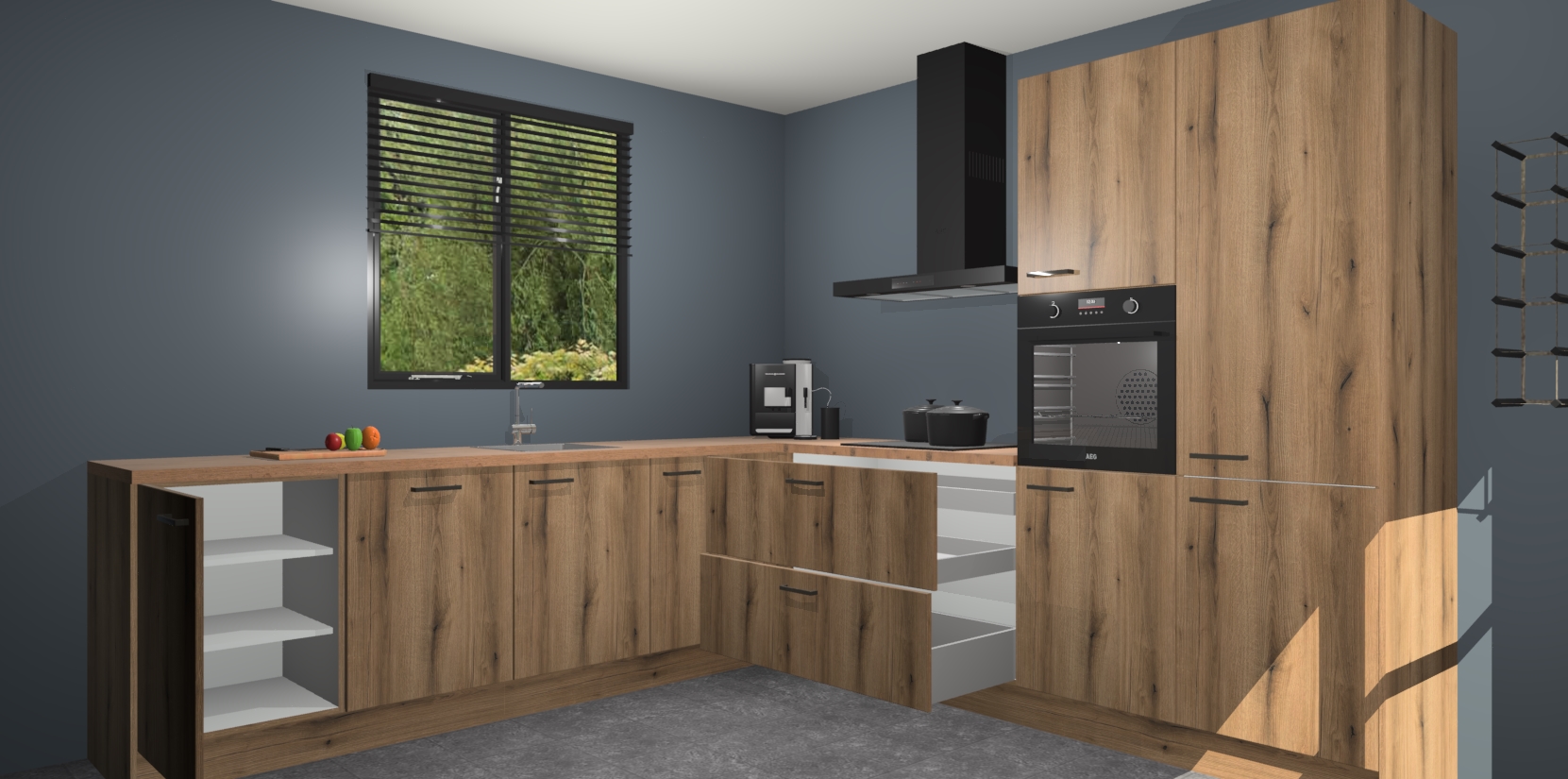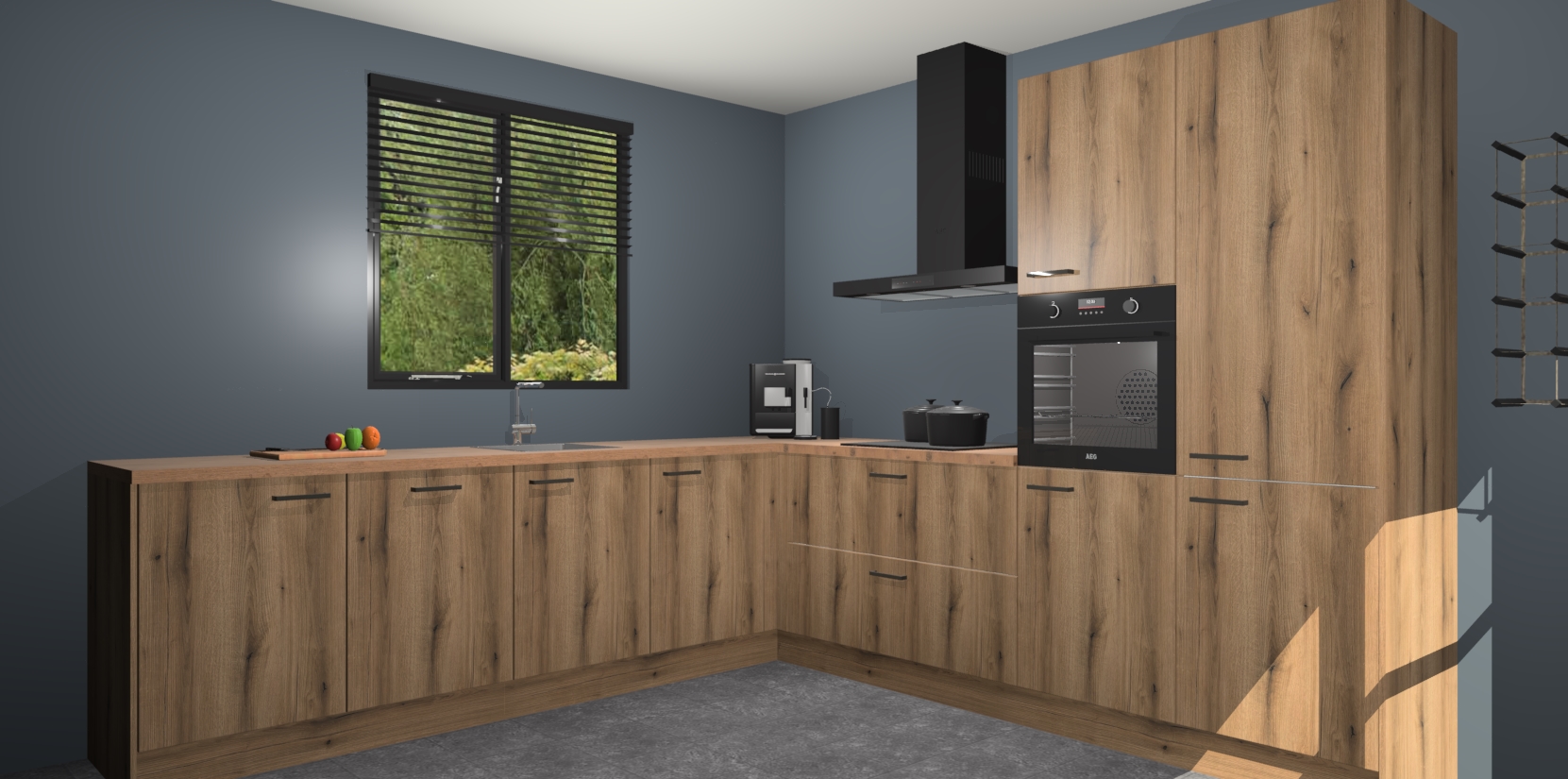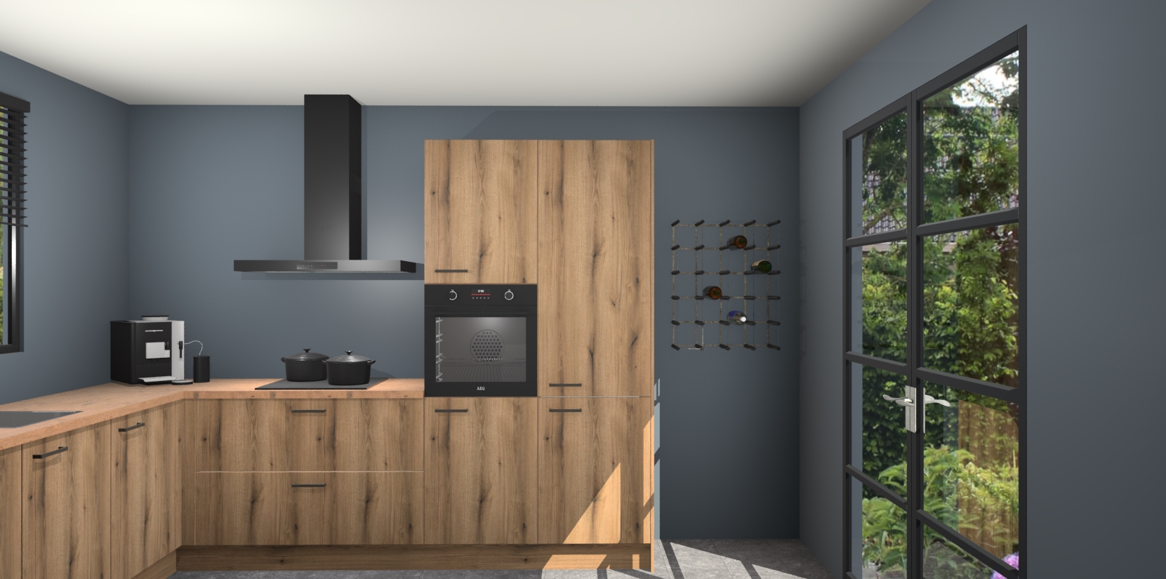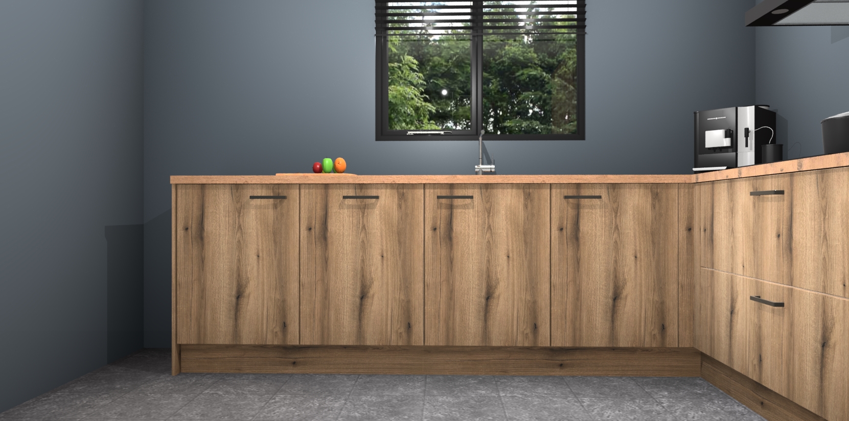 De Goud Eiken keuken Porto heeft 5 ingebouwde apparaten - een oven, inductiekookplaat, afzuigkap, vaatwasser en koelkast - waarmee u in een handomdraai heerlijke gerechten bereidt. Soft-close deuren zorgen voor nog meer functionaliteit en gemak. En dit alles voor een onverslaanbaar vaste prijs. En als u nu bestelt, duurt de levering maar 7 weken! Wat nog ongelooflijker is, is dat onze kasten voor gemonteerd worden geleverd.