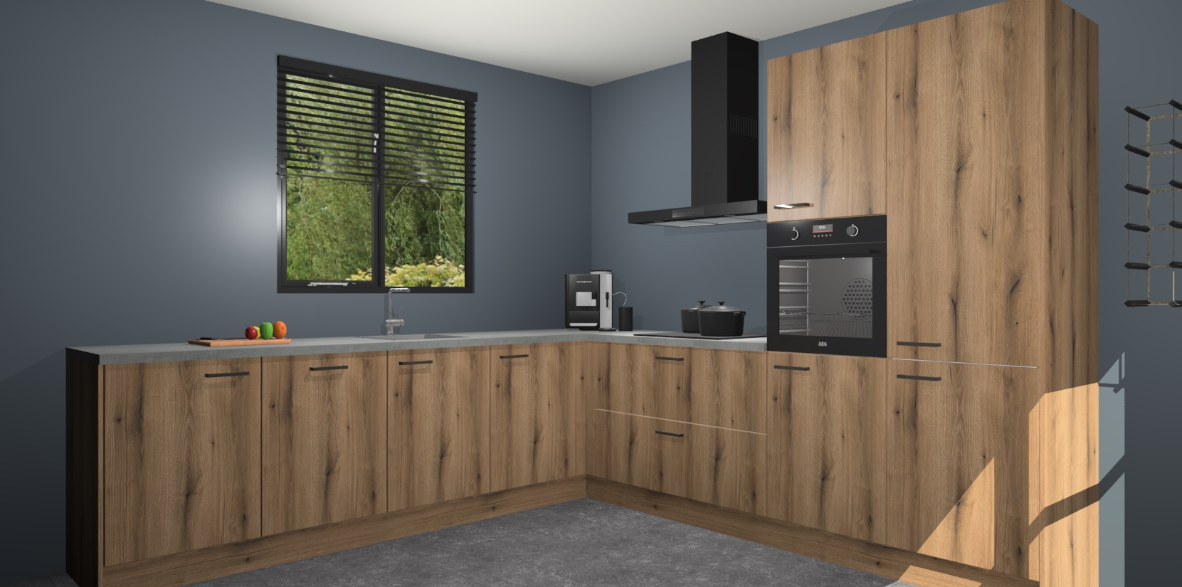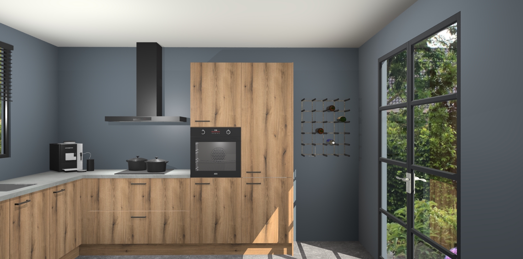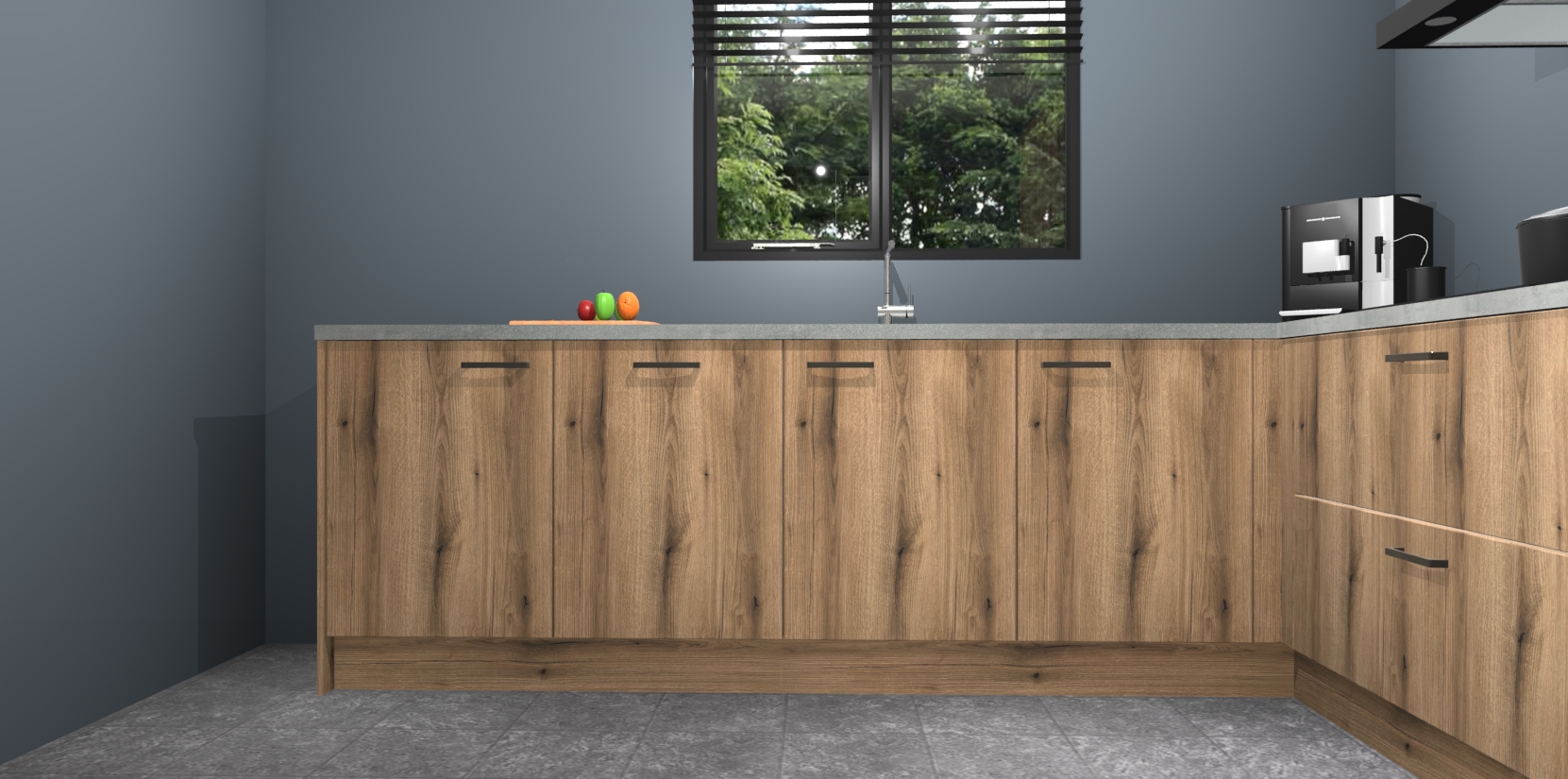 De Goud Eiken keuken Porto heeft 5 ingebouwde apparaten - een oven, inductiekookplaat, afzuigkap, vaatwasser en koelkast - waarmee u in een handomdraai heerlijke gerechten bereidt. Soft-close deuren zorgen voor nog meer functionaliteit en gemak. En dit alles voor een onverslaanbaar vaste prijs. En als u nu bestelt, duurt de levering maar 7 weken! Wat nog ongelooflijker is, is dat onze kasten voor gemonteerd worden geleverd.