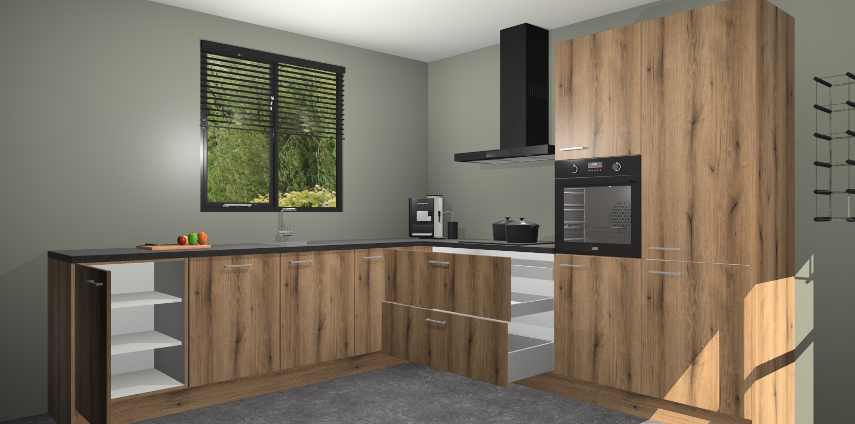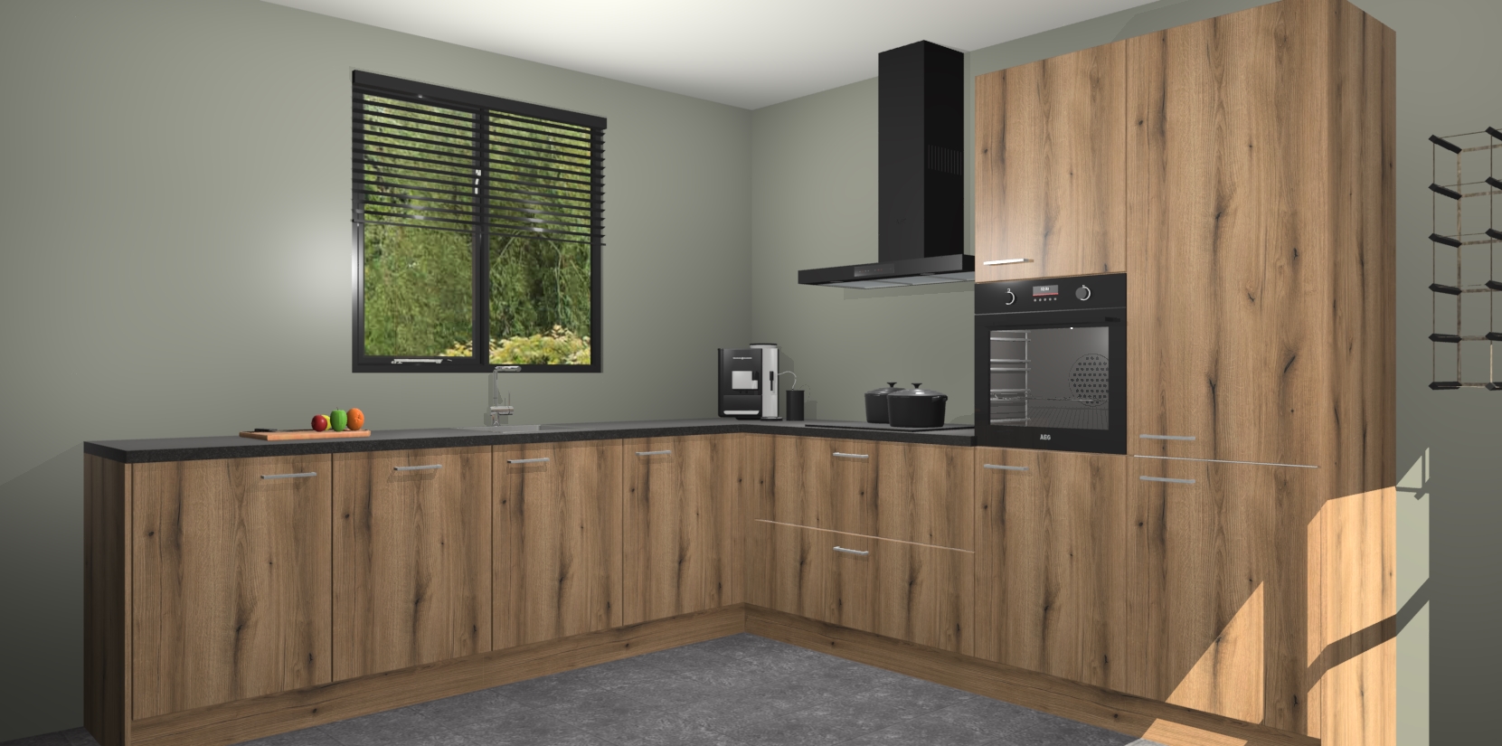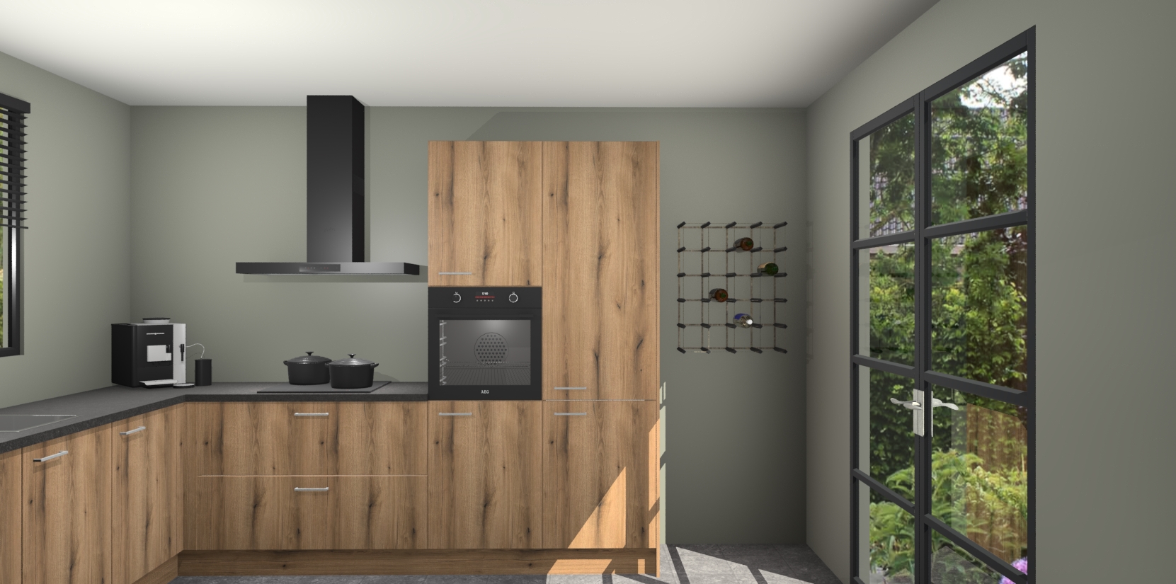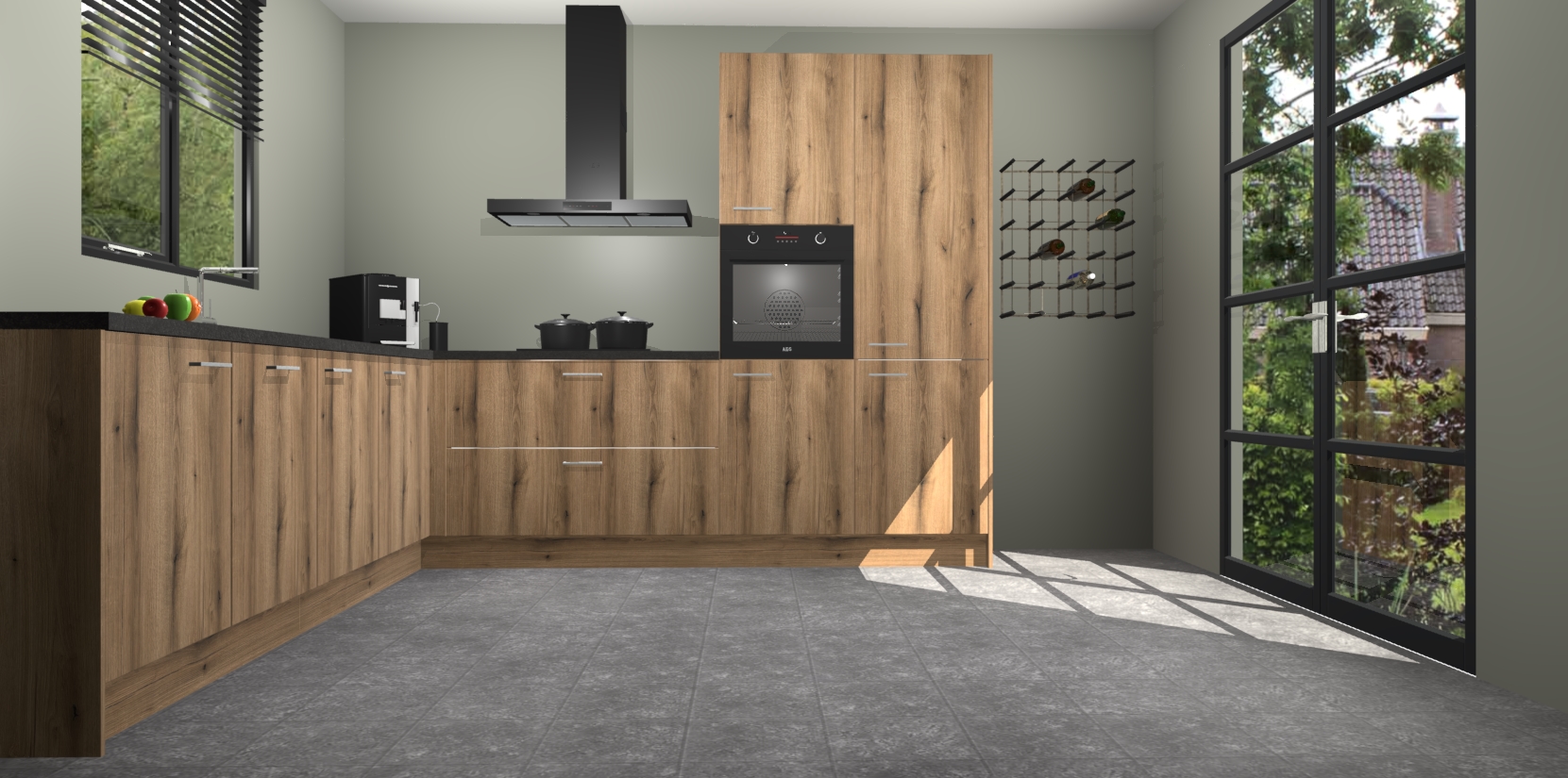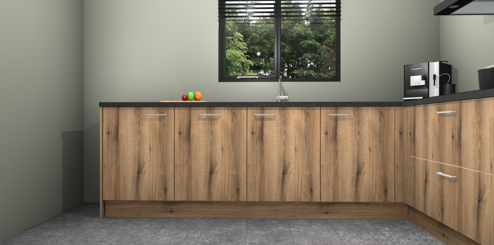 De Goud Eiken keuken Porto heeft 5 ingebouwde apparaten - een oven, inductiekookplaat, afzuigkap, vaatwasser en koelkast - waarmee u in een handomdraai heerlijke gerechten bereidt. Soft-close deuren zorgen voor nog meer functionaliteit en gemak. En dit alles voor een onverslaanbaar vaste prijs. En als u nu bestelt, duurt de levering maar 7 weken! Wat nog ongelooflijker is, is dat onze kasten voor gemonteerd worden geleverd.