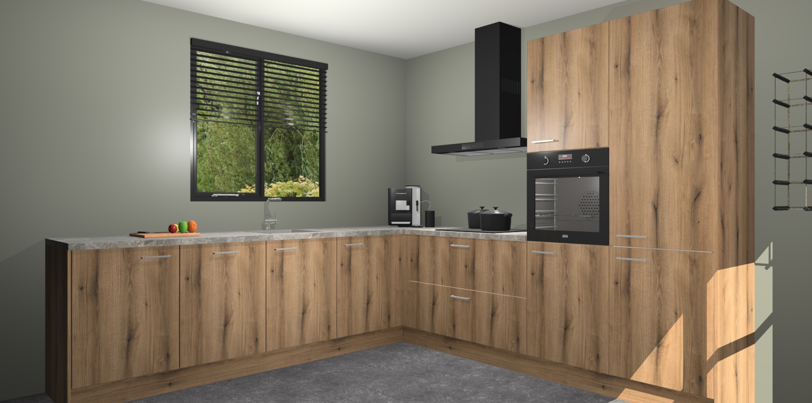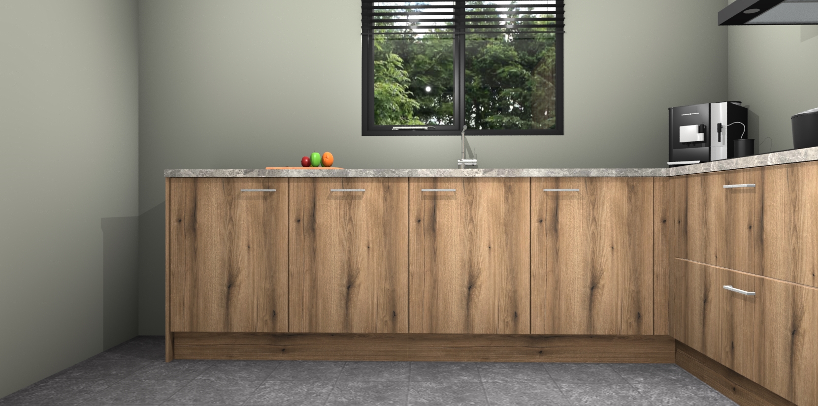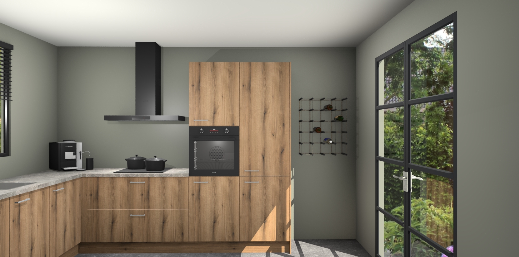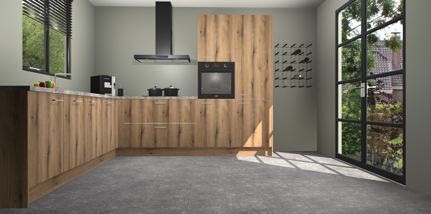 De Goud Eiken keuken Porto heeft 5 ingebouwde apparaten - een oven, inductiekookplaat, afzuigkap, vaatwasser en koelkast - waarmee u in een handomdraai heerlijke gerechten bereidt. Soft-close deuren zorgen voor nog meer functionaliteit en gemak. En dit alles voor een onverslaanbaar vaste prijs. En als u nu bestelt, duurt de levering maar 7 weken! Wat nog ongelooflijker is, is dat onze kasten voor gemonteerd worden geleverd.