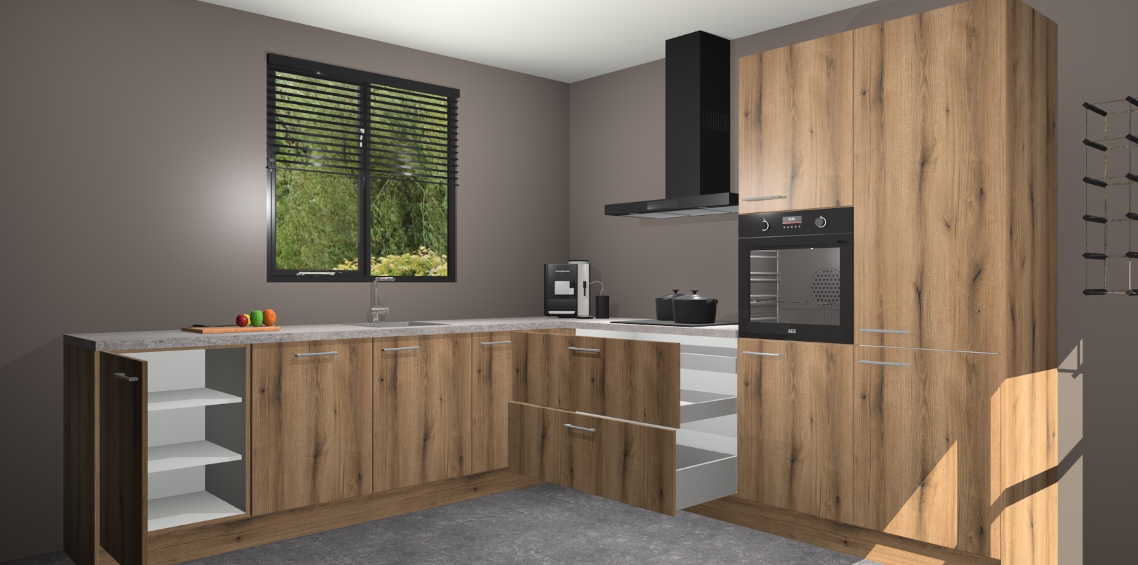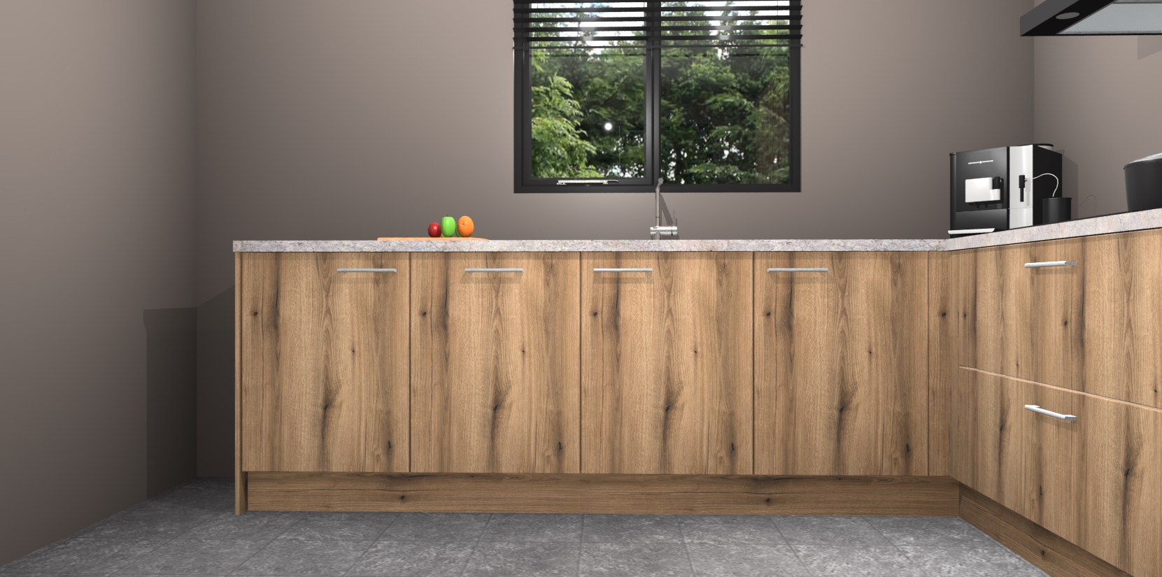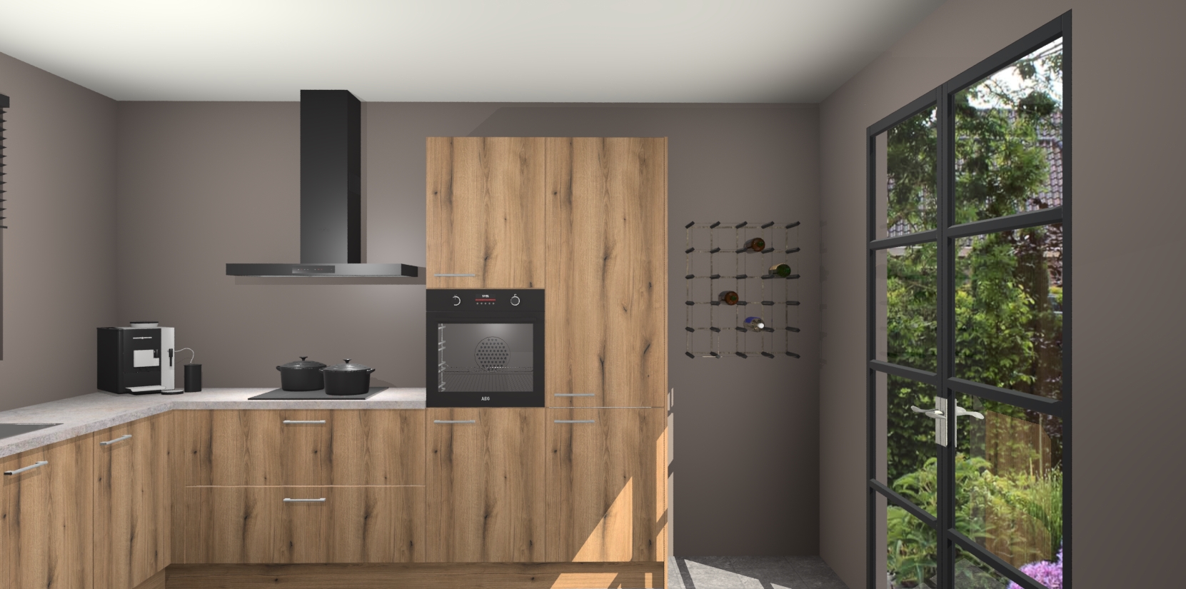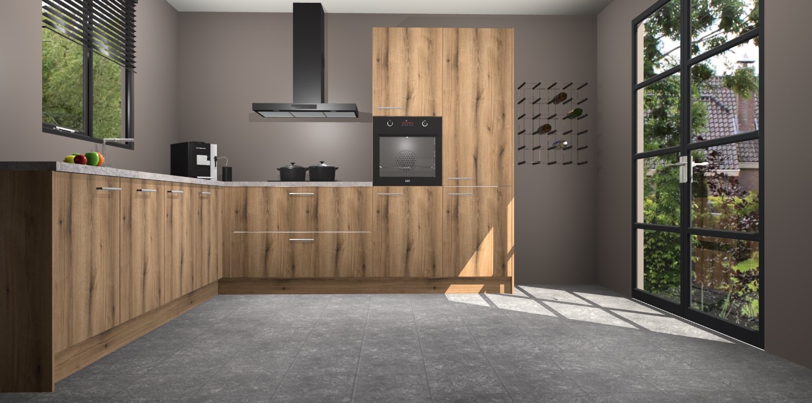 De Goud Eiken keuken Porto heeft 5 ingebouwde apparaten - een oven, inductiekookplaat, afzuigkap, vaatwasser en koelkast - waarmee u in een handomdraai heerlijke gerechten bereidt. Soft-close deuren zorgen voor nog meer functionaliteit en gemak. En dit alles voor een onverslaanbaar vaste prijs. En als u nu bestelt, duurt de levering maar 7 weken! Wat nog ongelooflijker is, is dat onze kasten voor gemonteerd worden geleverd.