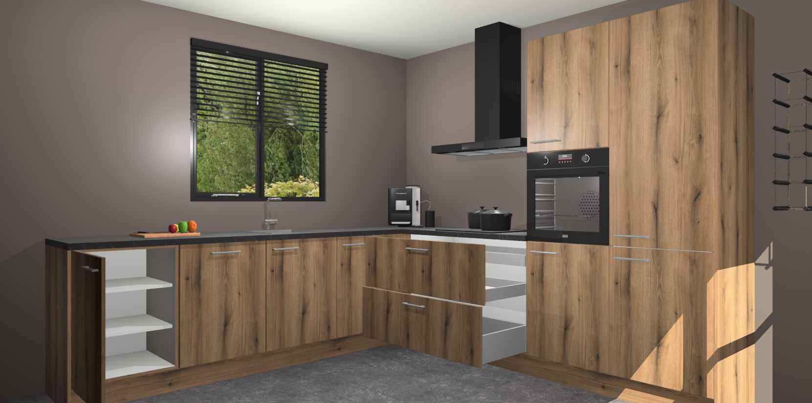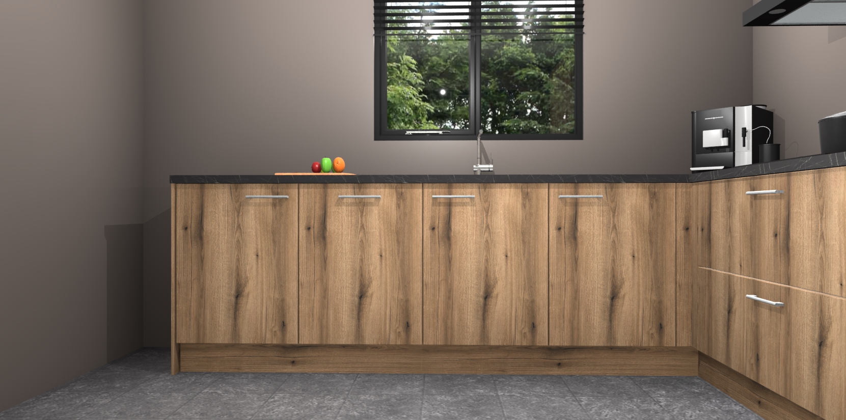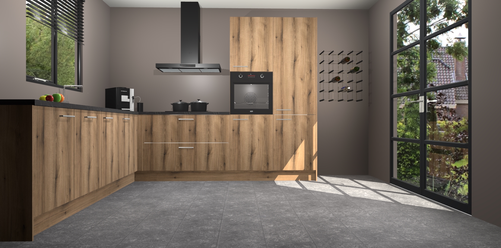 De Goud Eiken keuken Porto heeft 5 ingebouwde apparaten - een oven, inductiekookplaat, afzuigkap, vaatwasser en koelkast - waarmee u in een handomdraai heerlijke gerechten bereidt. Soft-close deuren zorgen voor nog meer functionaliteit en gemak. En dit alles voor een onverslaanbaar vaste prijs. En als u nu bestelt, duurt de levering maar 7 weken! Wat nog ongelooflijker is, is dat onze kasten voor gemonteerd worden geleverd.