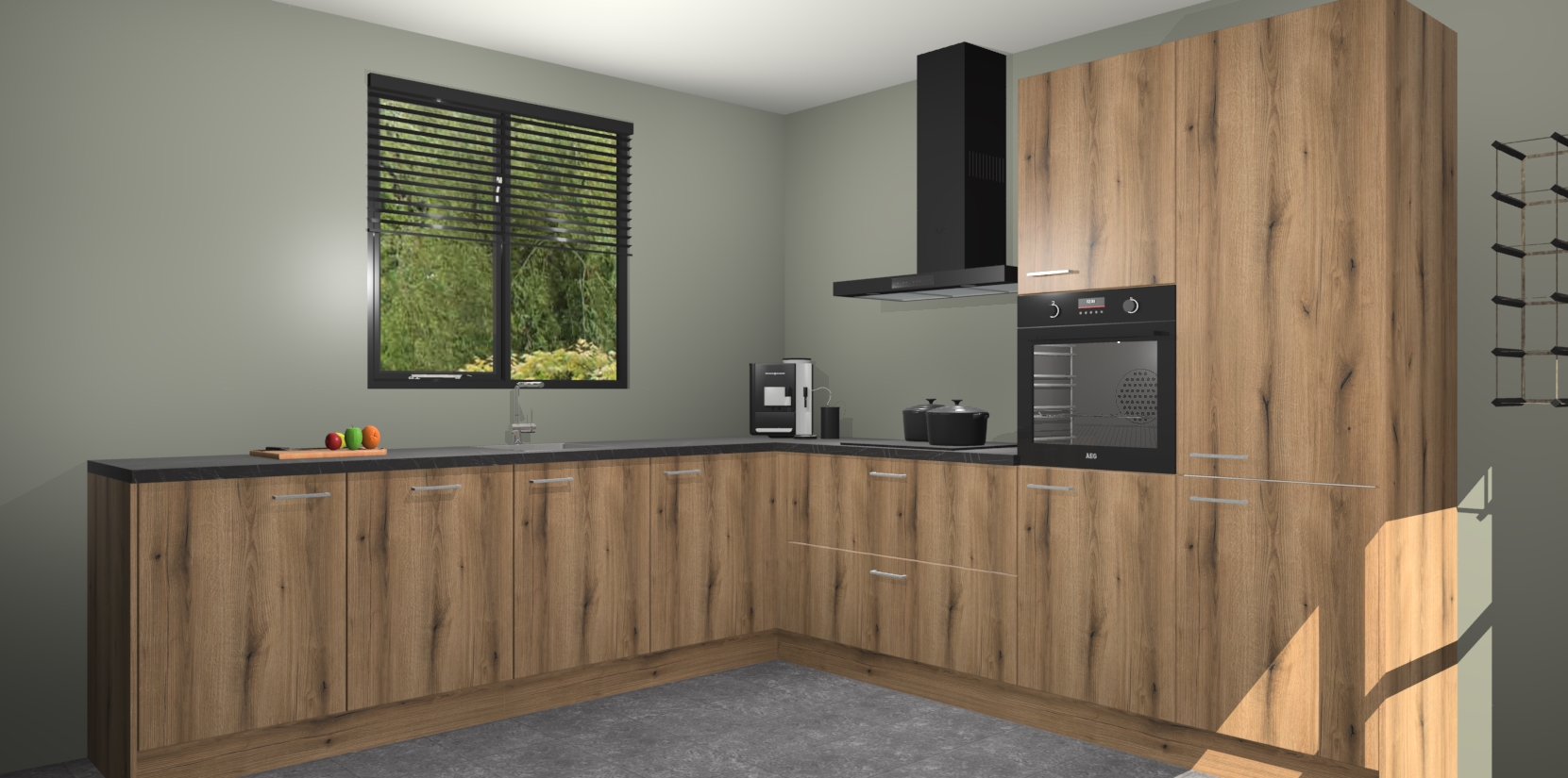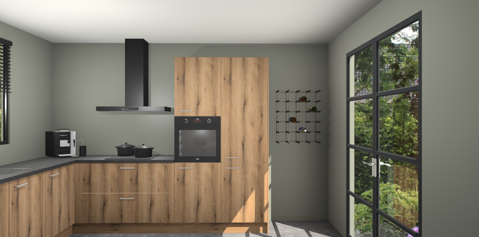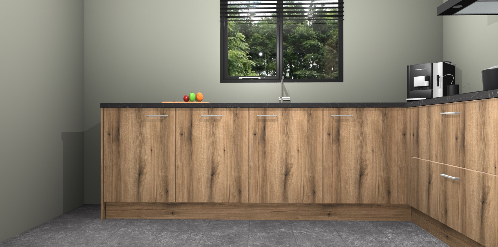 De Goud Eiken keuken Porto heeft 5 ingebouwde apparaten - een oven, inductiekookplaat, afzuigkap, vaatwasser en koelkast - waarmee u in een handomdraai heerlijke gerechten bereidt. Soft-close deuren zorgen voor nog meer functionaliteit en gemak. En dit alles voor een onverslaanbaar vaste prijs. En als u nu bestelt, duurt de levering maar 7 weken! Wat nog ongelooflijker is, is dat onze kasten voor gemonteerd worden geleverd.