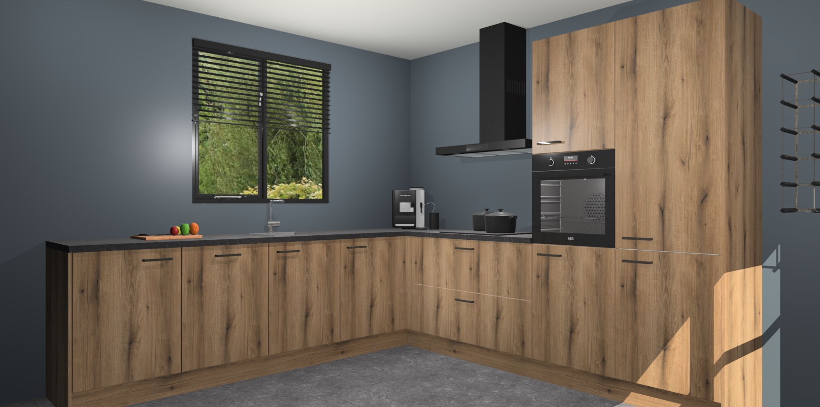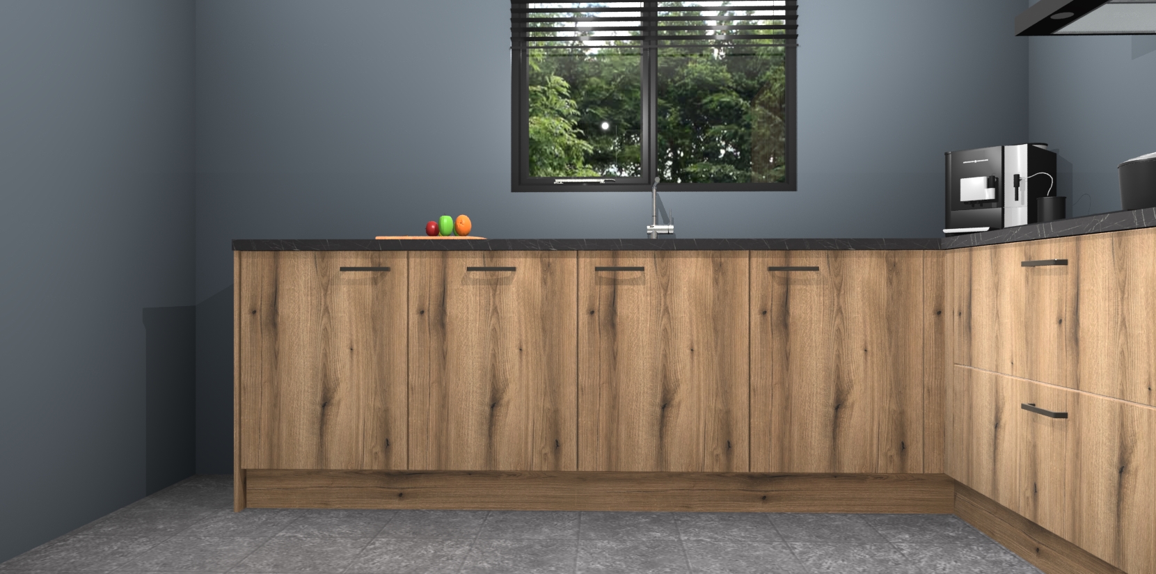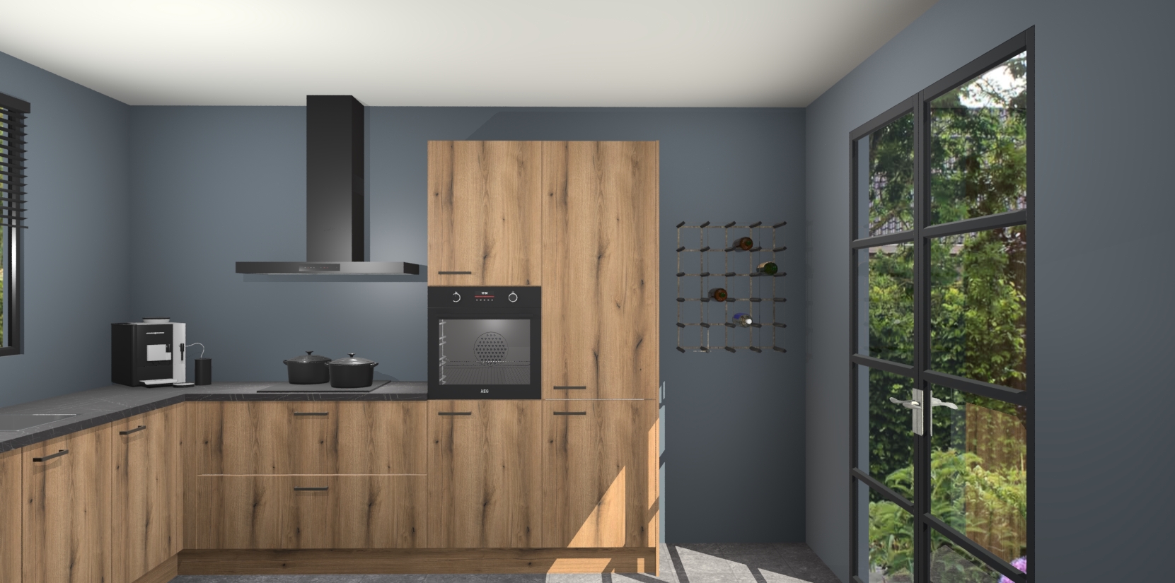 De Goud Eiken keuken Porto heeft 5 ingebouwde apparaten - een oven, inductiekookplaat, afzuigkap, vaatwasser en koelkast - waarmee u in een handomdraai heerlijke gerechten bereidt. Soft-close deuren zorgen voor nog meer functionaliteit en gemak. En dit alles voor een onverslaanbaar vaste prijs. En als u nu bestelt, duurt de levering maar 7 weken! Wat nog ongelooflijker is, is dat onze kasten voor gemonteerd worden geleverd.