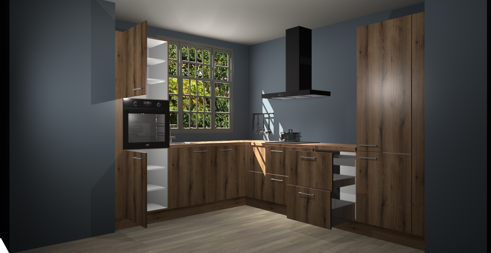 Met een modern, tijdloos design en ruime opslagruimte, zult u zich in no-time thuis voelen in uw nieuwe keuken. Uw leven wordt eenvoudiger met de soft-close deuren die voor het ultieme stille comfort zorgen - geen geluid dat u stoort terwijl u kookt. Ook is de keuken voorzien van 5 ingebouwde apparaten: een oven, inductie kookplaat, afzuigkap, vaatwasser en koelkast. Deze kunnen gemakkelijk na bestelling worden bijgewerkt naar AEG - waardoor uw luxe ervaring compleet is.