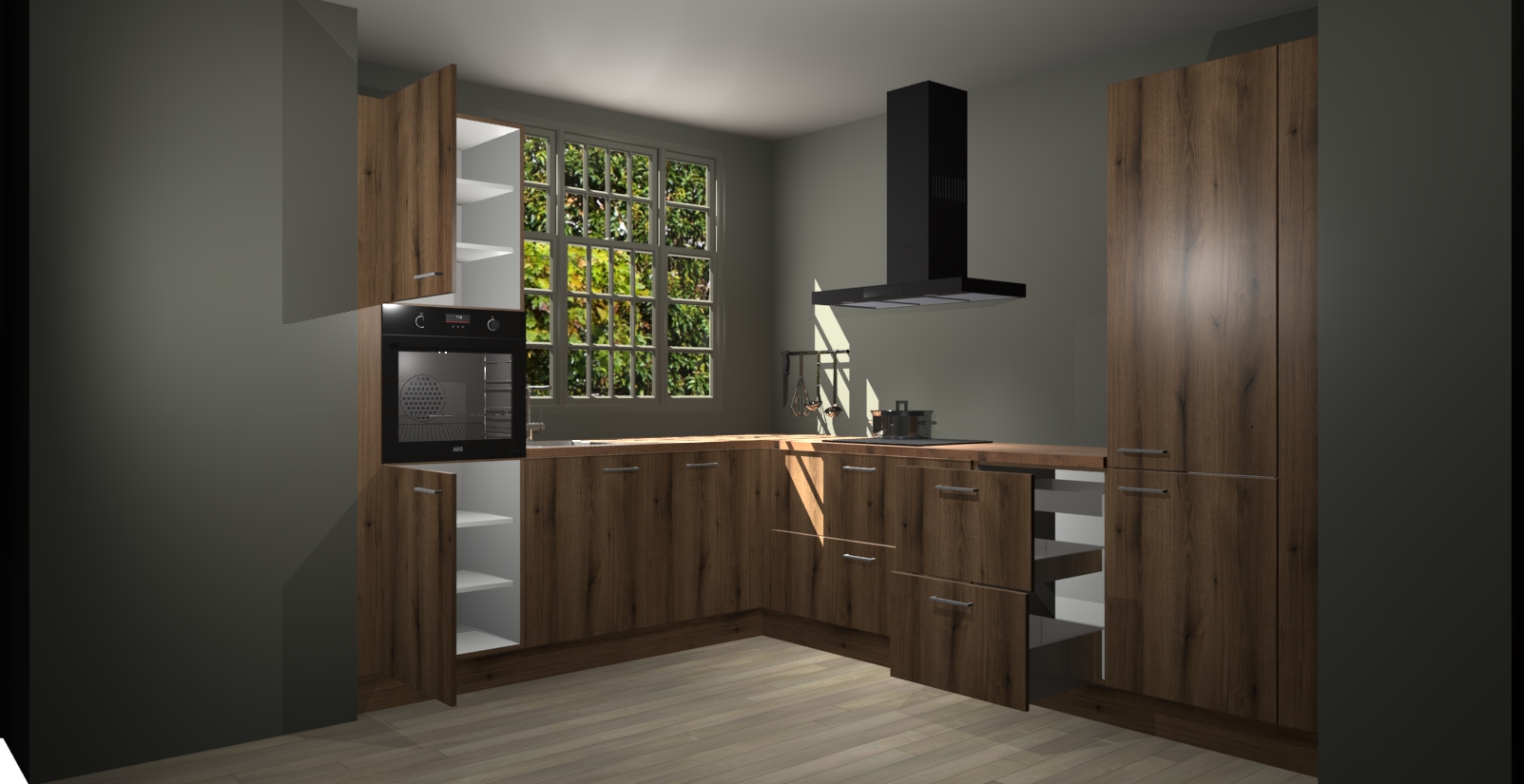 Met een modern, tijdloos design en ruime opslagruimte, zult u zich in no-time thuis voelen in uw nieuwe keuken. Uw leven wordt eenvoudiger met de soft-close deuren die voor het ultieme stille comfort zorgen - geen geluid dat u stoort terwijl u kookt. Ook is de keuken voorzien van 5 ingebouwde apparaten: een oven, inductie kookplaat, afzuigkap, vaatwasser en koelkast. Deze kunnen gemakkelijk na bestelling worden bijgewerkt naar AEG - waardoor uw luxe ervaring compleet is.