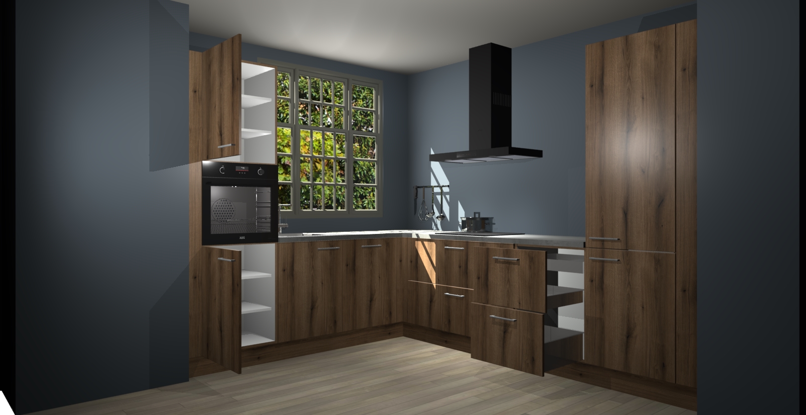 Met een modern, tijdloos design en ruime opslagruimte, zult u zich in no-time thuis voelen in uw nieuwe keuken. Uw leven wordt eenvoudiger met de soft-close deuren die voor het ultieme stille comfort zorgen - geen geluid dat u stoort terwijl u kookt. Ook is de keuken voorzien van 5 ingebouwde apparaten: een oven, inductie kookplaat, afzuigkap, vaatwasser en koelkast. Deze kunnen gemakkelijk na bestelling worden bijgewerkt naar AEG - waardoor uw luxe ervaring compleet is.
