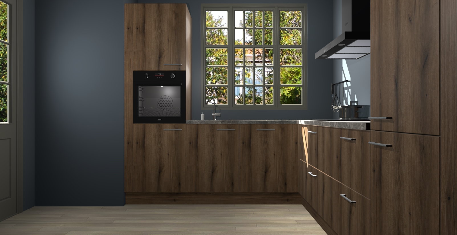 Met een modern, tijdloos design en ruime opslagruimte, zult u zich in no-time thuis voelen in uw nieuwe keuken. Uw leven wordt eenvoudiger met de soft-close deuren die voor het ultieme stille comfort zorgen - geen geluid dat u stoort terwijl u kookt. Ook is de keuken voorzien van 5 ingebouwde apparaten: een oven, inductie kookplaat, afzuigkap, vaatwasser en koelkast. Deze kunnen gemakkelijk na bestelling worden bijgewerkt naar AEG - waardoor uw luxe ervaring compleet is.