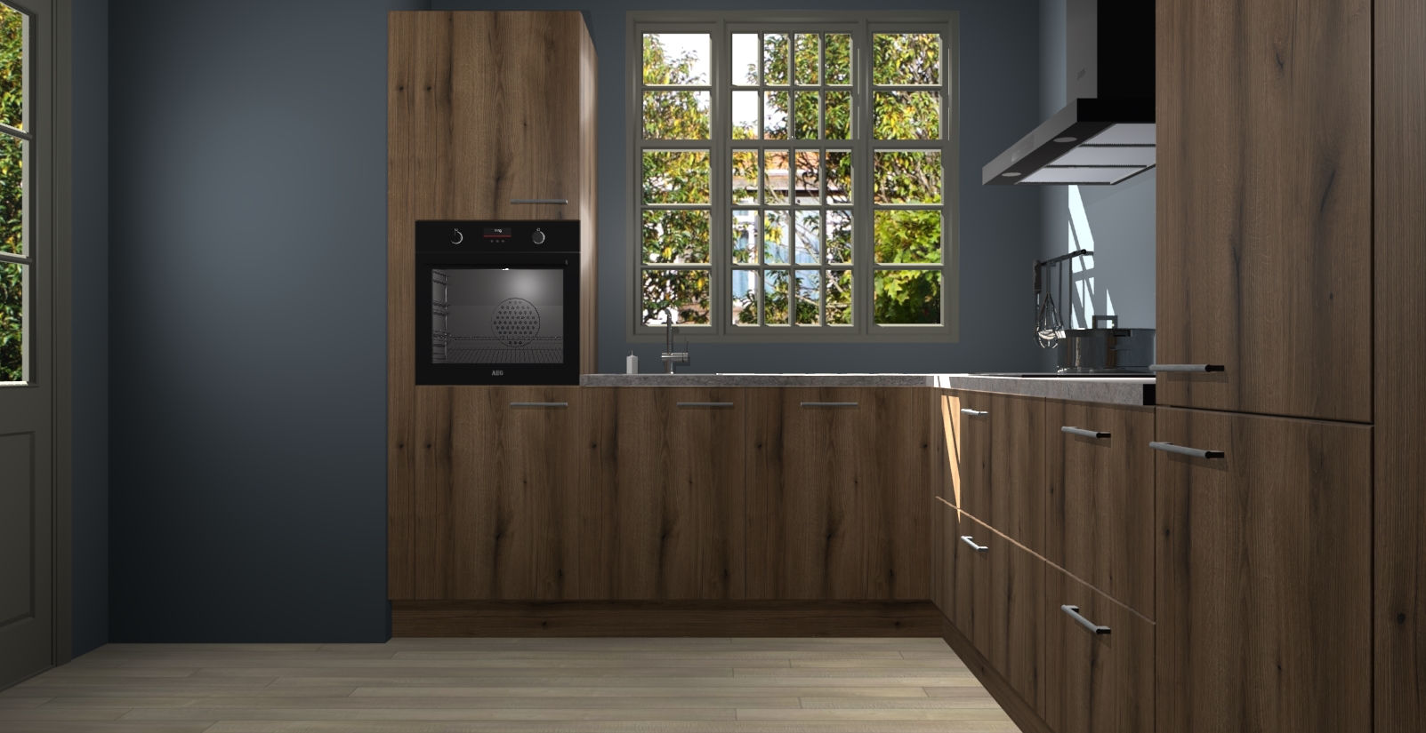 Met een modern, tijdloos design en ruime opslagruimte, zult u zich in no-time thuis voelen in uw nieuwe keuken. Uw leven wordt eenvoudiger met de soft-close deuren die voor het ultieme stille comfort zorgen - geen geluid dat u stoort terwijl u kookt. Ook is de keuken voorzien van 5 ingebouwde apparaten: een oven, inductie kookplaat, afzuigkap, vaatwasser en koelkast. Deze kunnen gemakkelijk na bestelling worden bijgewerkt naar AEG - waardoor uw luxe ervaring compleet is.