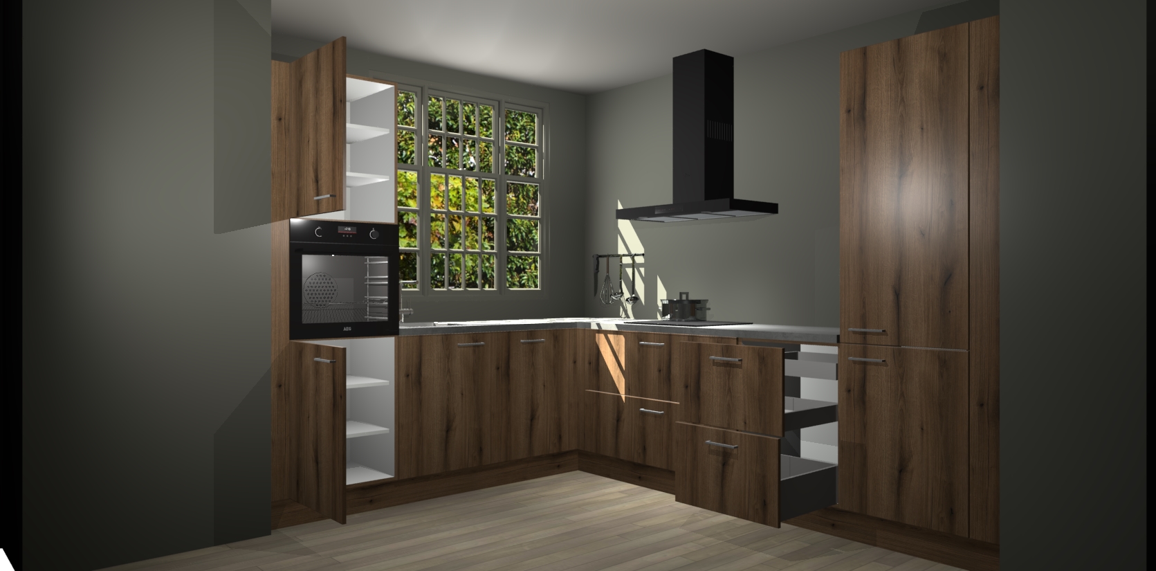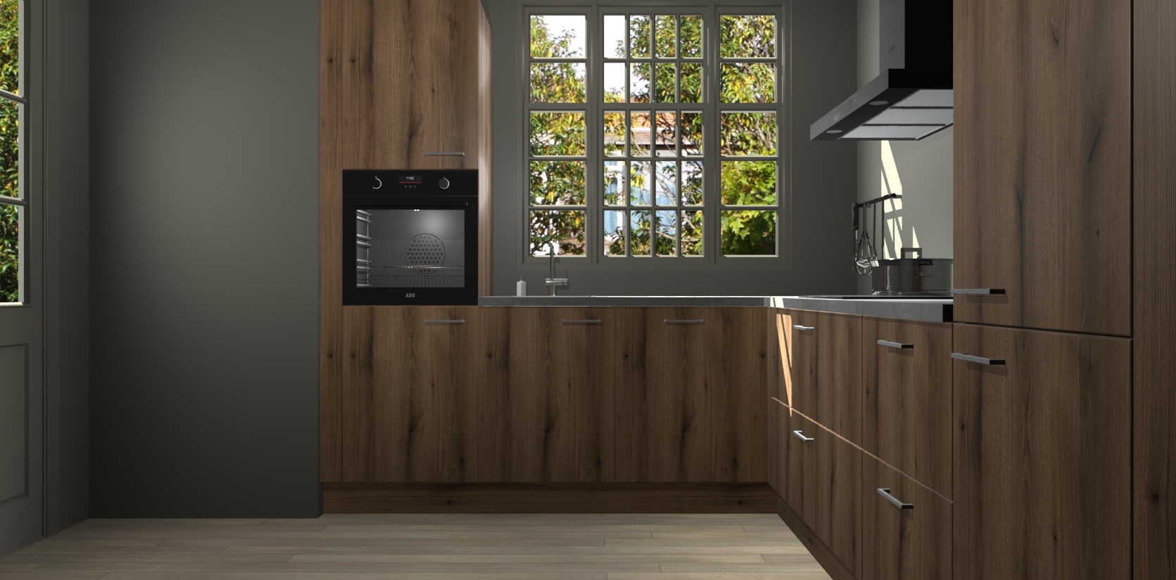 Met een modern, tijdloos design en ruime opslagruimte, zult u zich in no-time thuis voelen in uw nieuwe keuken. Uw leven wordt eenvoudiger met de soft-close deuren die voor het ultieme stille comfort zorgen - geen geluid dat u stoort terwijl u kookt. Ook is de keuken voorzien van 5 ingebouwde apparaten: een oven, inductie kookplaat, afzuigkap, vaatwasser en koelkast. Deze kunnen gemakkelijk na bestelling worden bijgewerkt naar AEG - waardoor uw luxe ervaring compleet is.
