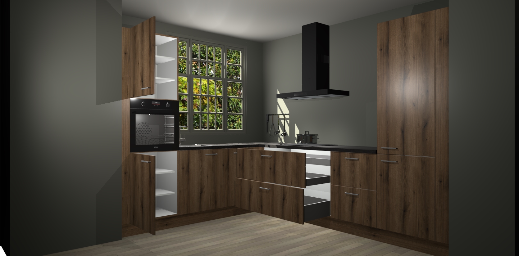 Met een modern, tijdloos design en ruime opslagruimte, zult u zich in no-time thuis voelen in uw nieuwe keuken. Uw leven wordt eenvoudiger met de soft-close deuren die voor het ultieme stille comfort zorgen - geen geluid dat u stoort terwijl u kookt. Ook is de keuken voorzien van 5 ingebouwde apparaten: een oven, inductie kookplaat, afzuigkap, vaatwasser en koelkast. Deze kunnen gemakkelijk na bestelling worden bijgewerkt naar AEG - waardoor uw luxe ervaring compleet is.
