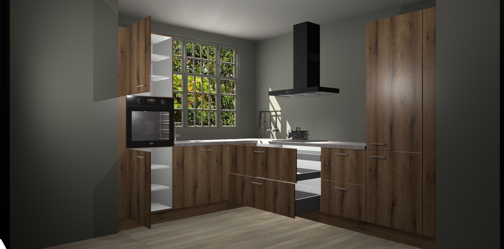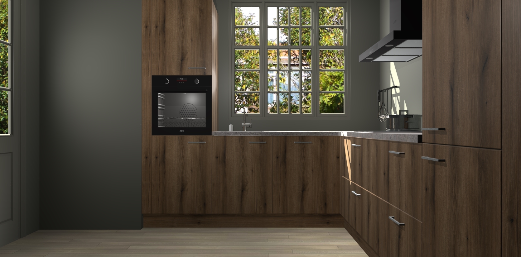 Met een modern, tijdloos design en ruime opslagruimte, zult u zich in no-time thuis voelen in uw nieuwe keuken. Uw leven wordt eenvoudiger met de soft-close deuren die voor het ultieme stille comfort zorgen - geen geluid dat u stoort terwijl u kookt. Ook is de keuken voorzien van 5 ingebouwde apparaten: een oven, inductie kookplaat, afzuigkap, vaatwasser en koelkast. Deze kunnen gemakkelijk na bestelling worden bijgewerkt naar AEG - waardoor uw luxe ervaring compleet is.