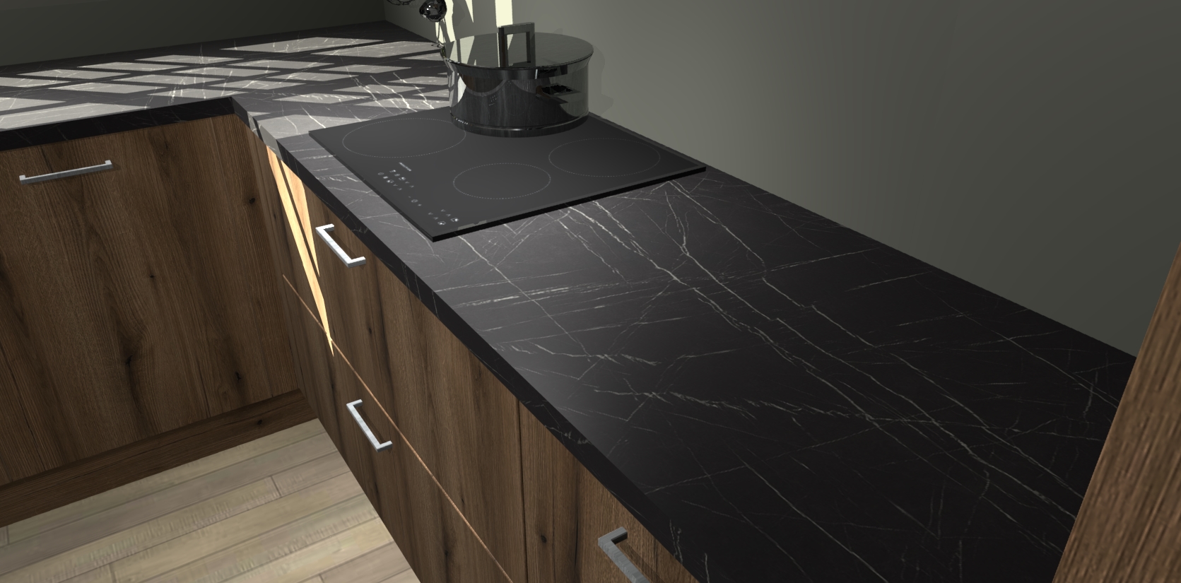 - Bij een hoekwerkblad zijn de hoeken in gevreesd en op maat gemaakt