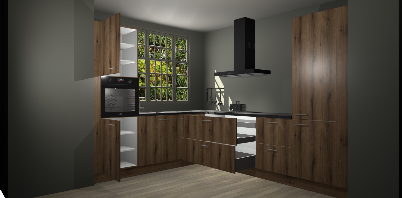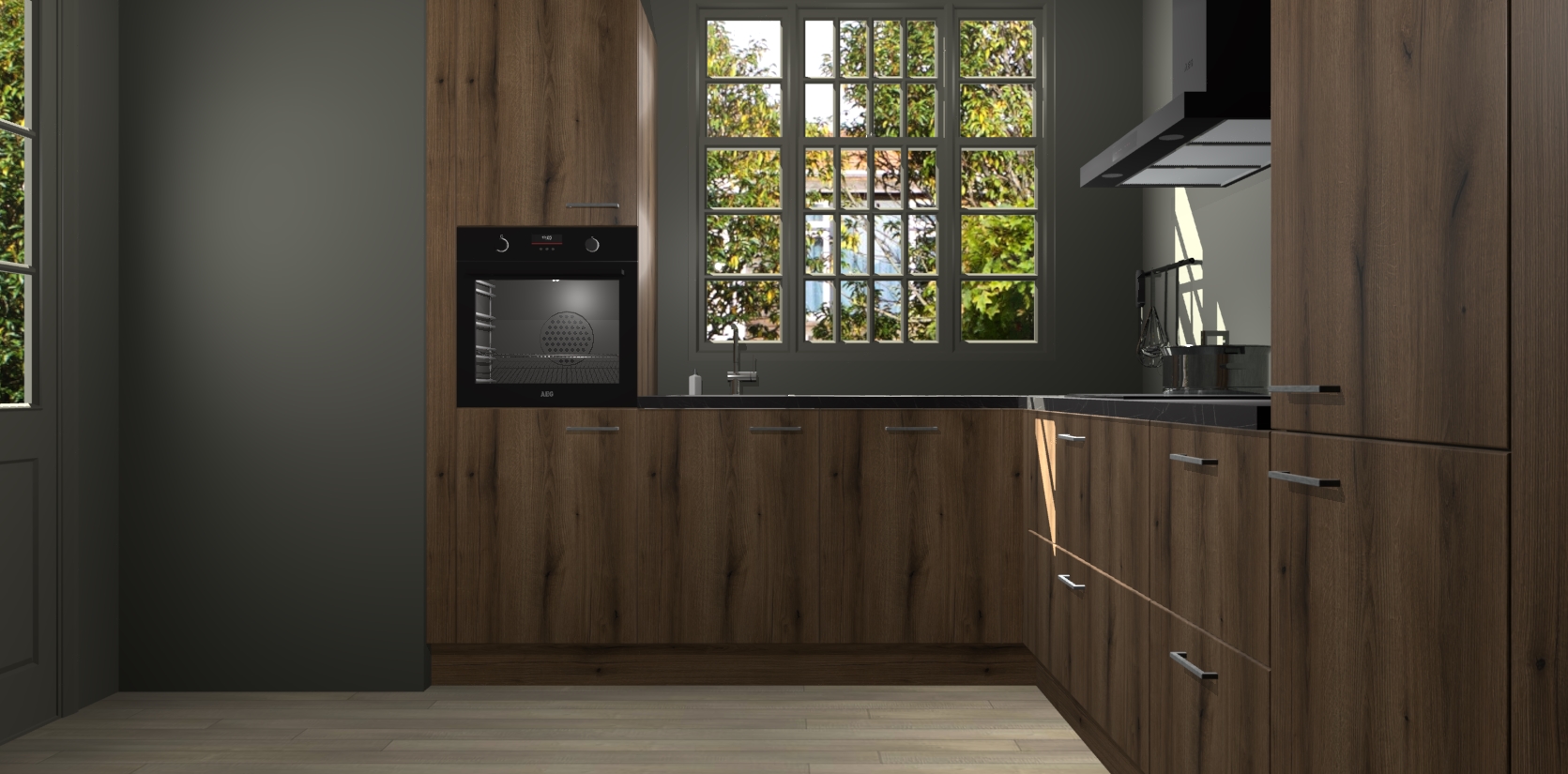 Met een modern, tijdloos design en ruime opslagruimte, zult u zich in no-time thuis voelen in uw nieuwe keuken. Uw leven wordt eenvoudiger met de soft-close deuren die voor het ultieme stille comfort zorgen - geen geluid dat u stoort terwijl u kookt. Ook is de keuken voorzien van 5 ingebouwde apparaten: een oven, inductie kookplaat, afzuigkap, vaatwasser en koelkast. Deze kunnen gemakkelijk na bestelling worden bijgewerkt naar AEG - waardoor uw luxe ervaring compleet is.