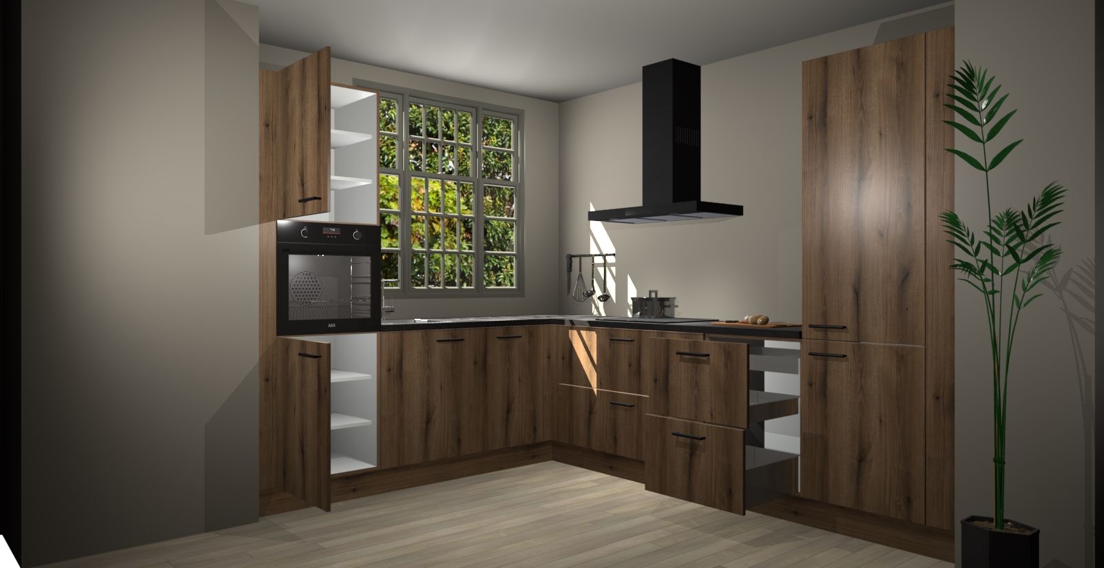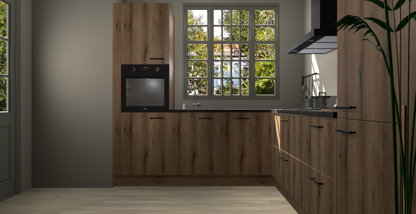 Met een modern, tijdloos design en ruime opslagruimte, zult u zich in no-time thuis voelen in uw nieuwe keuken. Uw leven wordt eenvoudiger met de soft-close deuren die voor het ultieme stille comfort zorgen - geen geluid dat u stoort terwijl u kookt. Ook is de keuken voorzien van 5 ingebouwde apparaten: een oven, inductie kookplaat, afzuigkap, vaatwasser en koelkast. Deze kunnen gemakkelijk na bestelling worden bijgewerkt naar AEG - waardoor uw luxe ervaring compleet is.